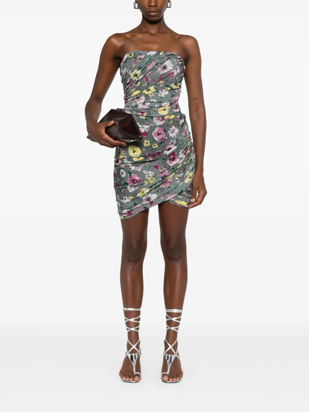 Мини-платье с цветочным принтом The Attico, серый