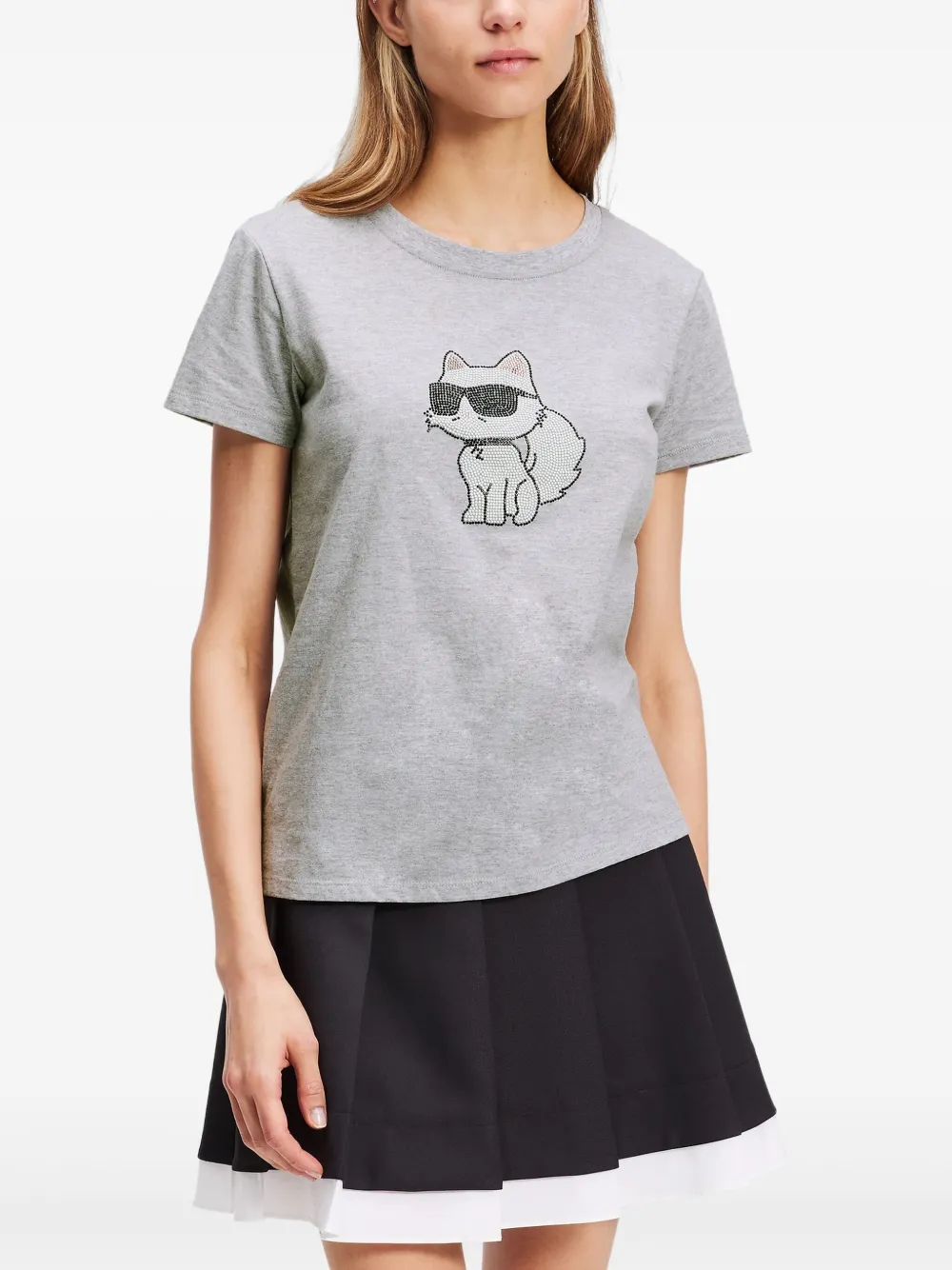 Футболка Ikon Choupette со стразами KARL LAGERFELD, серый