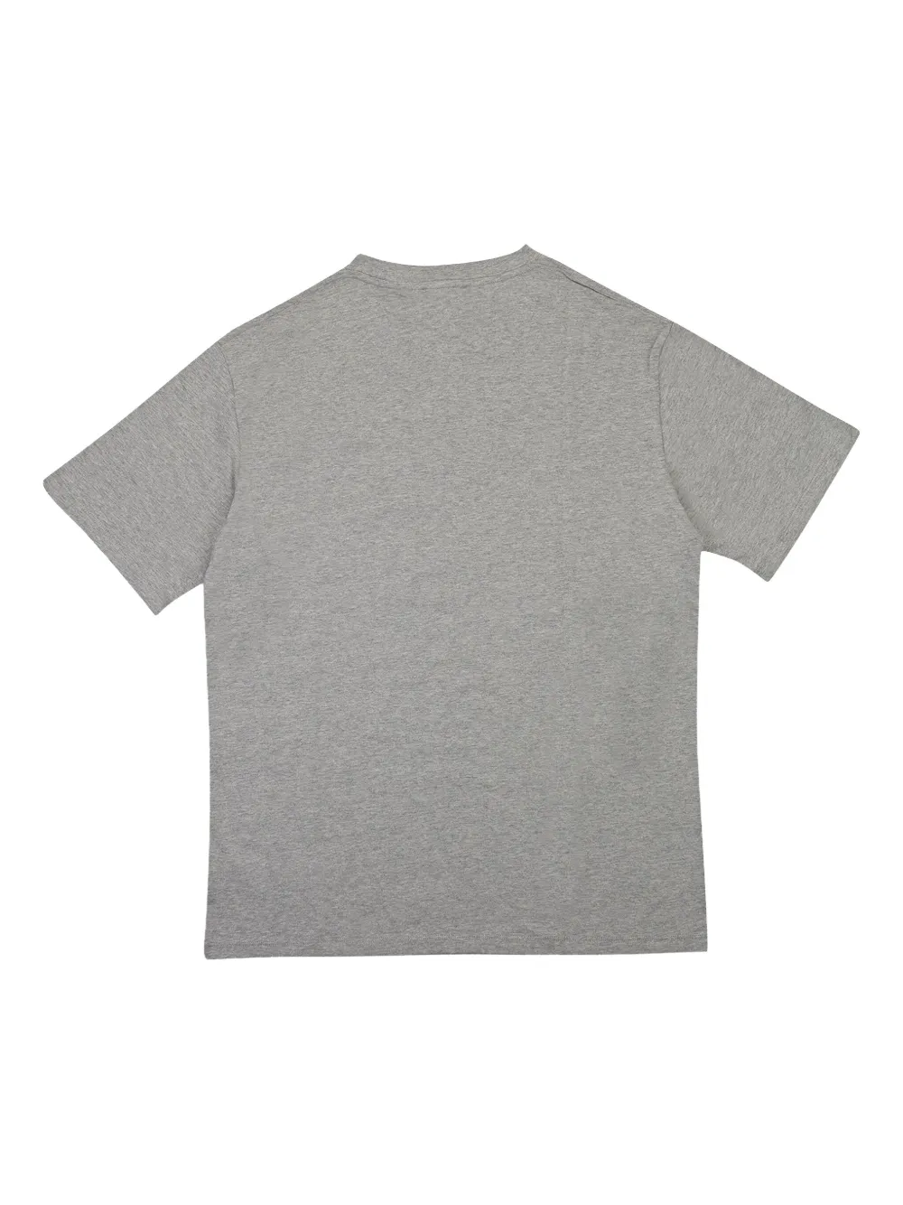 Серый круглый вырез горловины, короткие рукава, принт с логотипом на груди, прямой подол