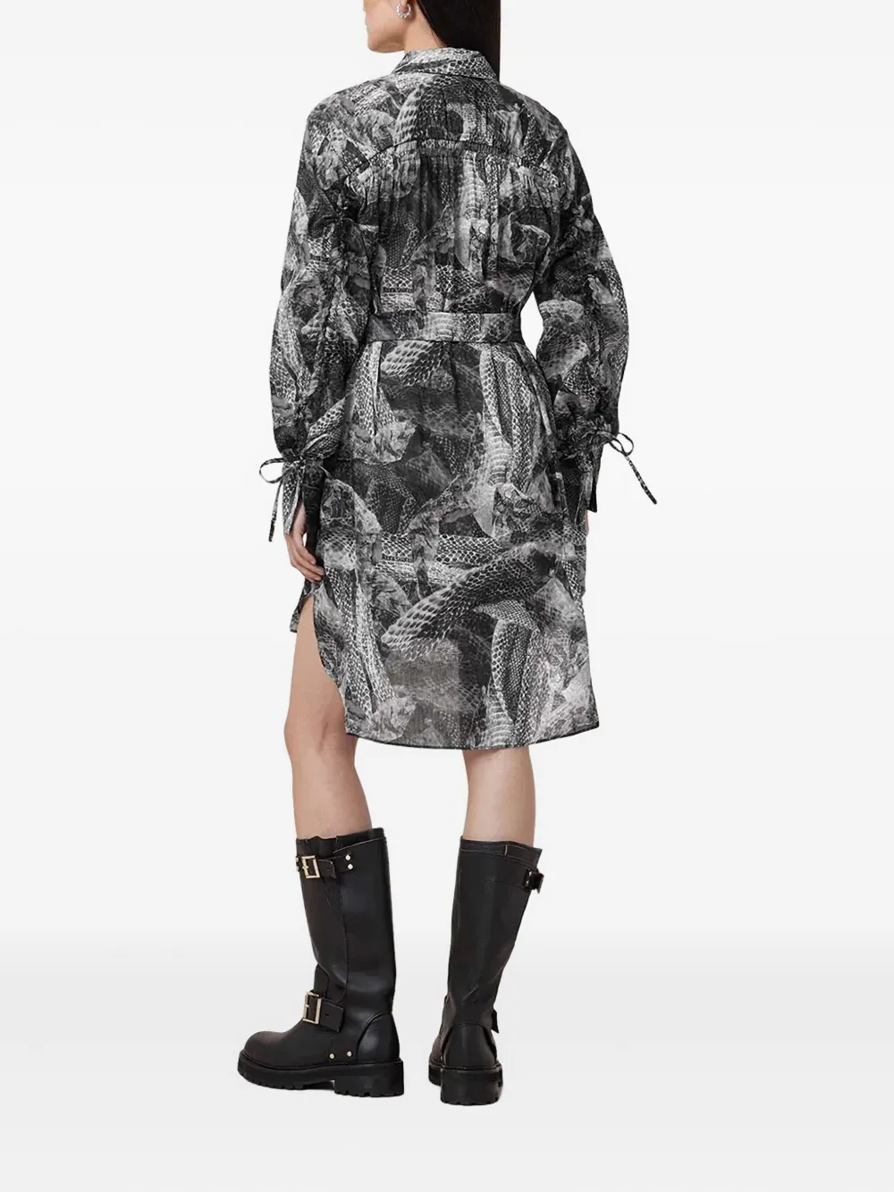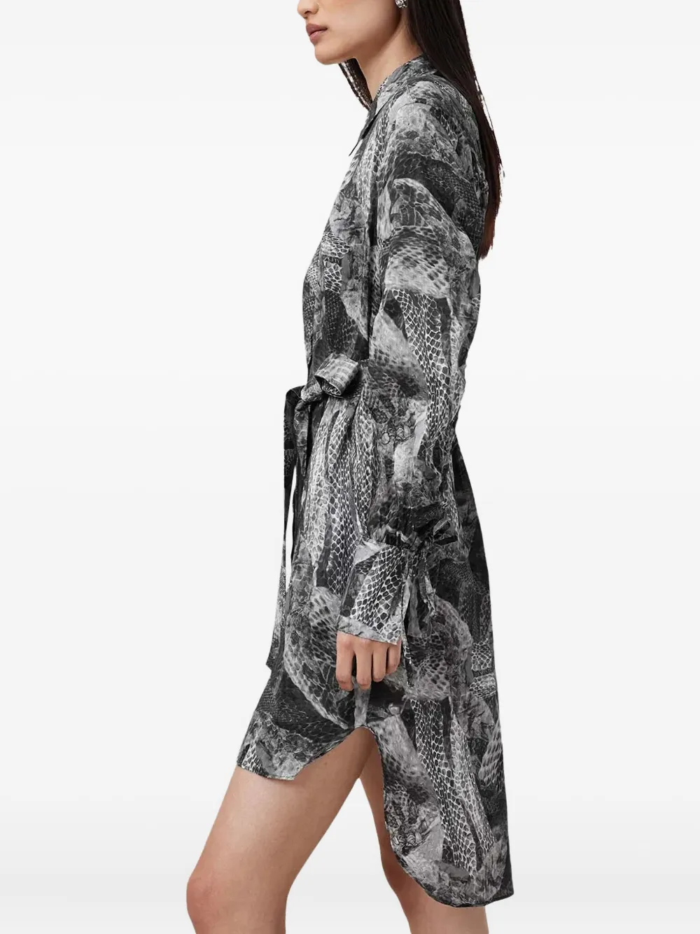Платье-рубашка с поясом и змеиным принтом AllSaints, серый