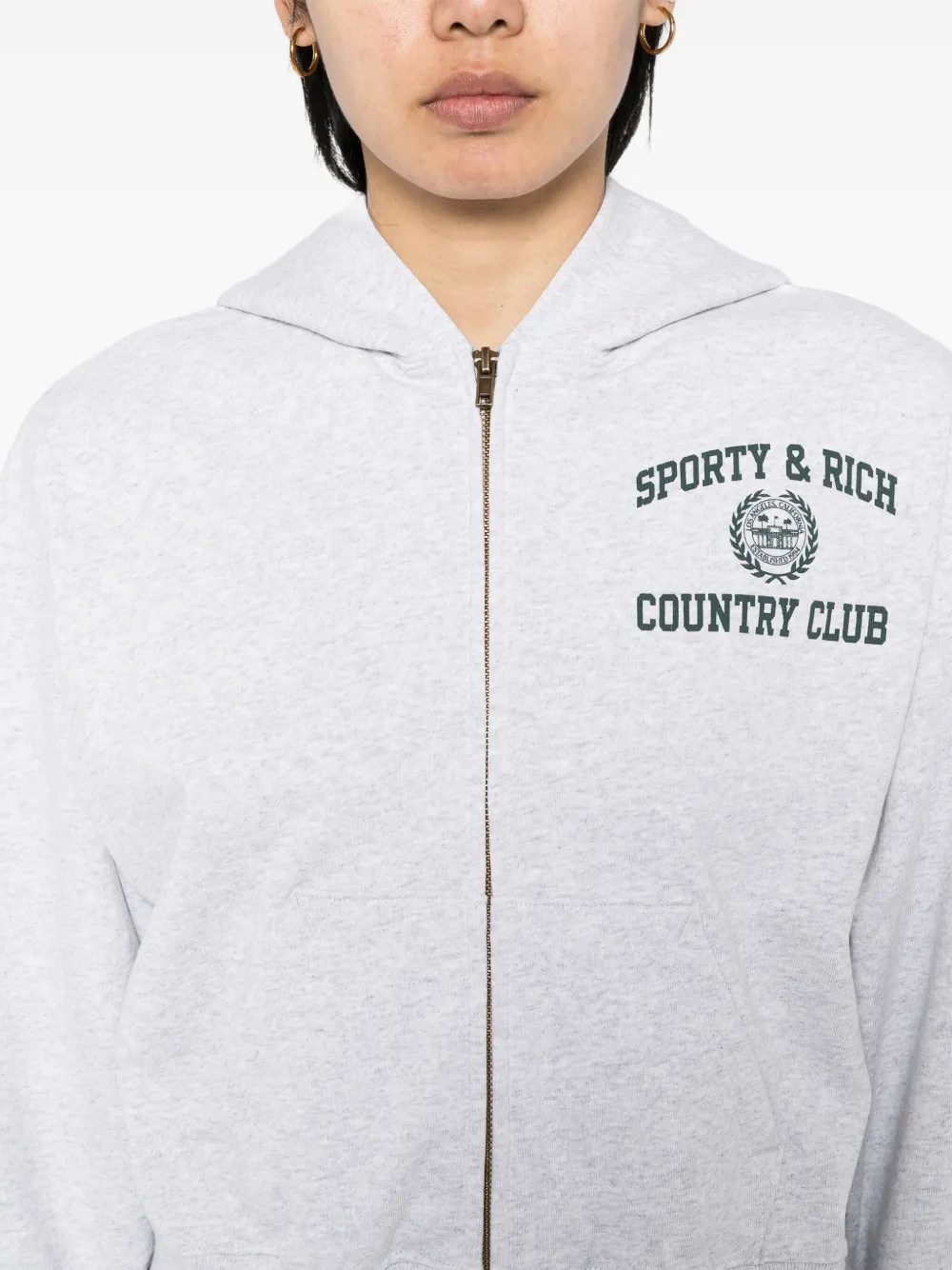 Укороченное худи на молнии Sporty & Rich, серый 29 631₽