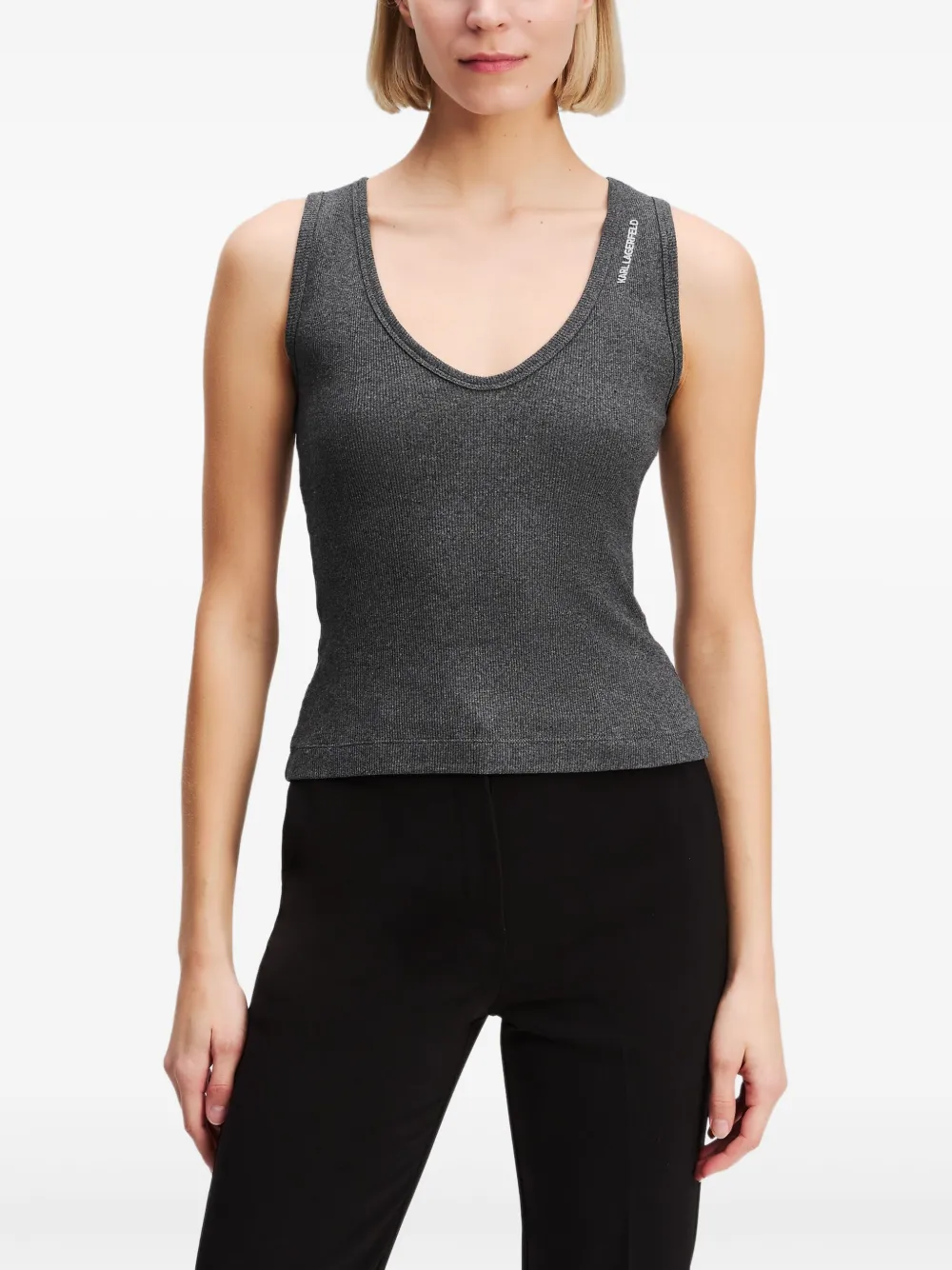 Топ в рубчик с V-образным вырезом KARL LAGERFELD, серый