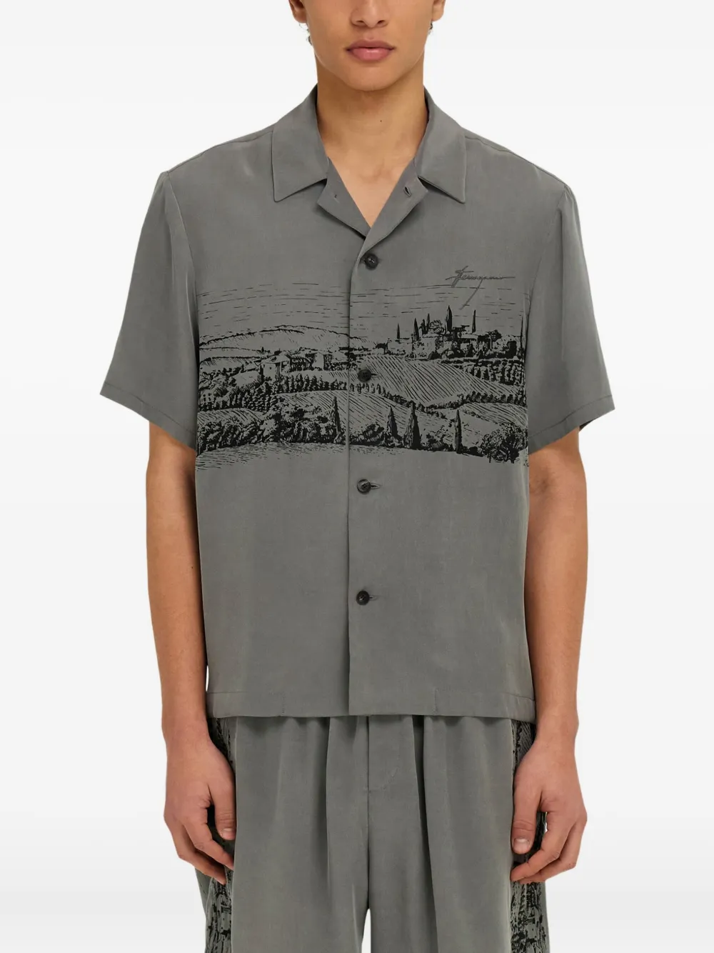 Шелковая рубашка с принтом Ferragamo, серый 67 176₽