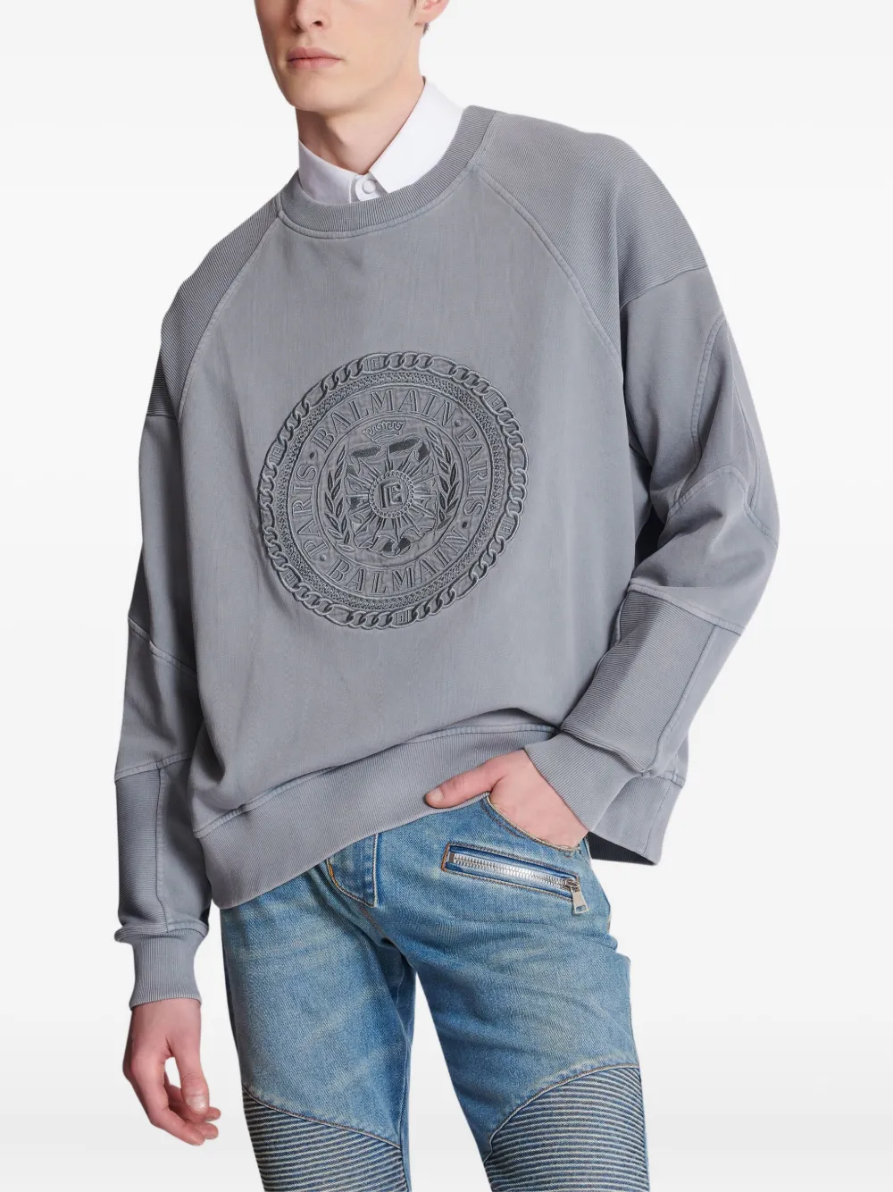 Толстовка с вышивкой BALMAIN, серый 58 116₽