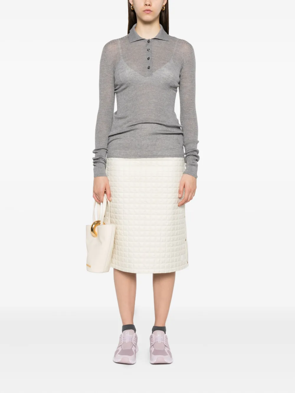 Шерстяная рубашка поло в рубчик MONCLER, серый 57 711₽