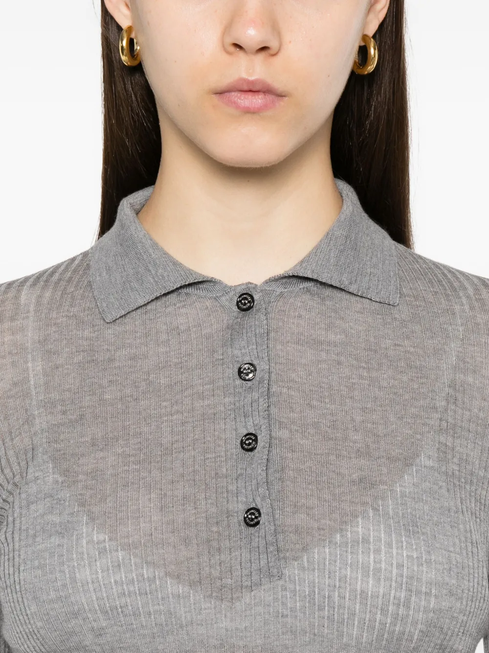 Шерстяная рубашка поло в рубчик MONCLER, серый
