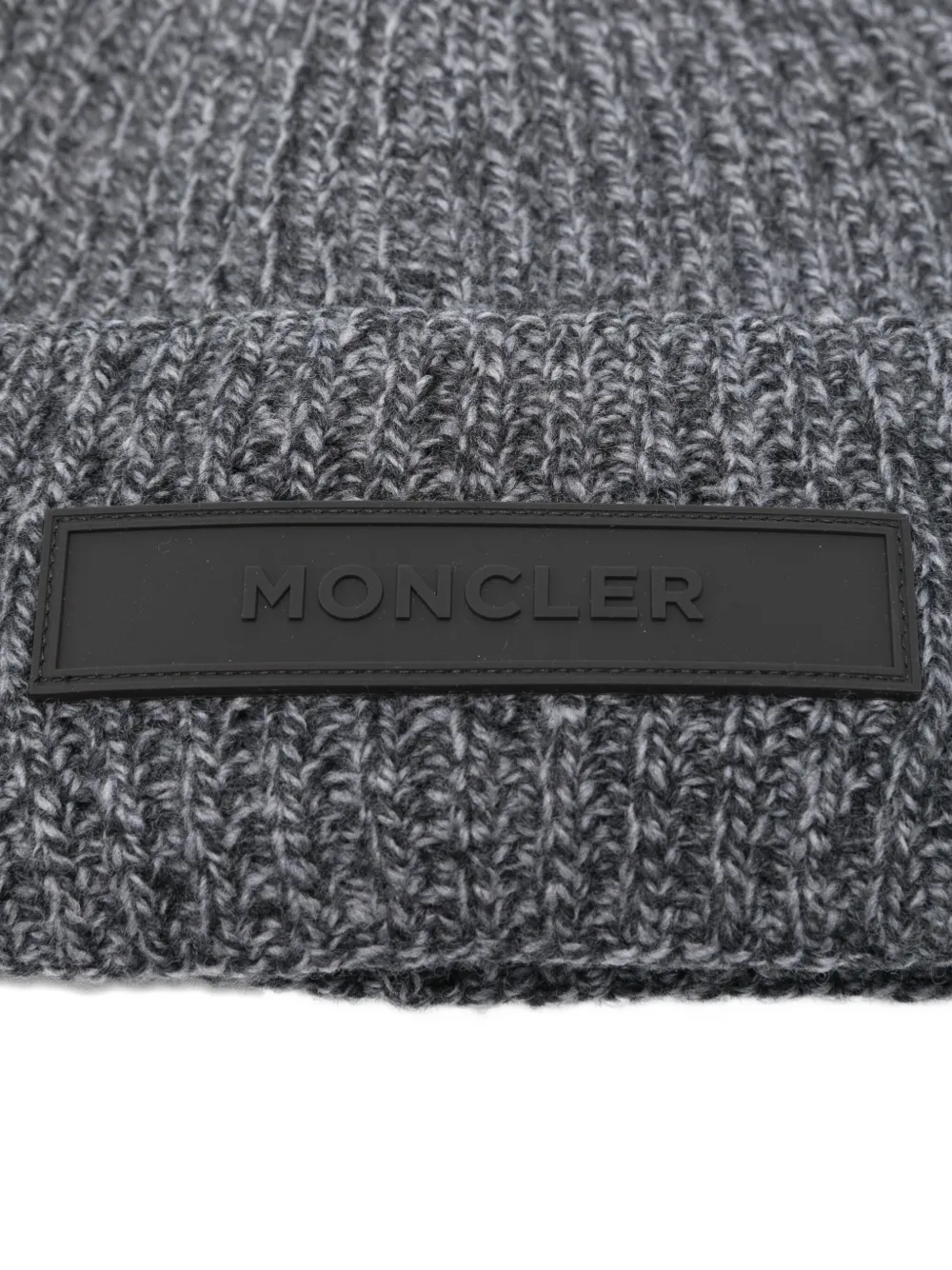 Ребристая шапка-бини с логотипом MONCLER, серый