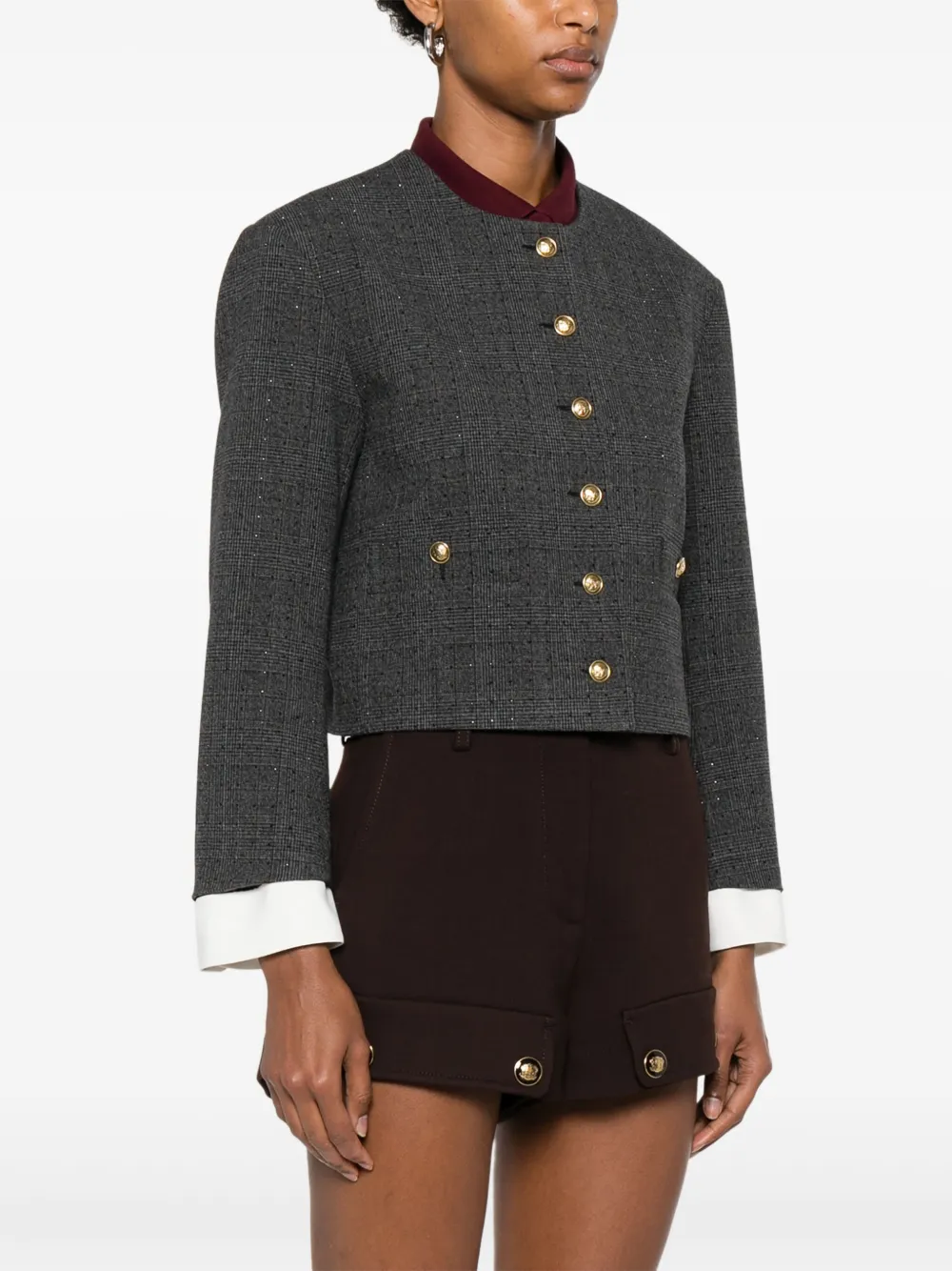 Укороченный жакет в клетку SANDRO, серый