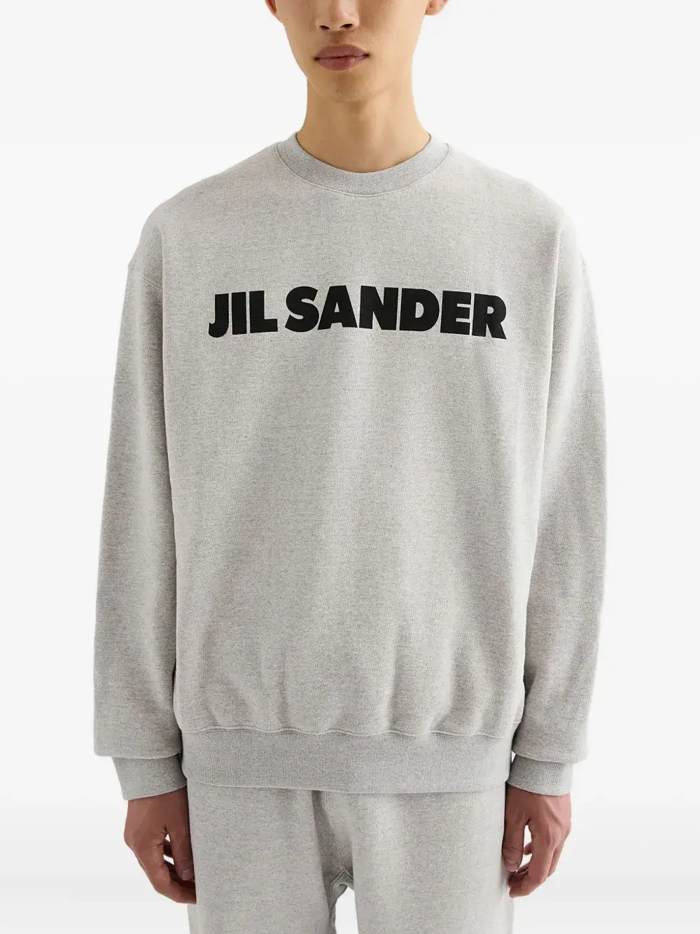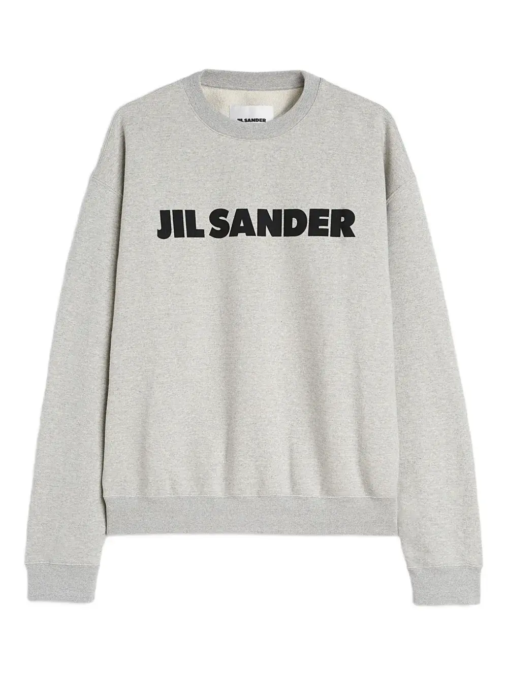 Свитшот из хлопкового махрового трикотажа с длинными рукавами и напечатанным логотипом Jil Sander, свободный крой; спущенные плечи; ребристый круглый вырез, подол и манжеты; напечатанный логотип Jil Sander спереди; плотный хлопковый махровый трикотаж; 100% хлопок; сделано в Италии