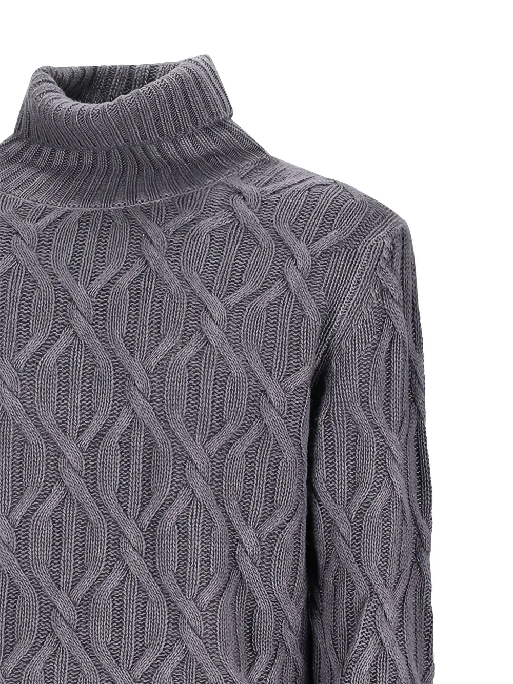 Серый водолазка с длинными рукавами и отделкой в рубчик с косичной вязкой