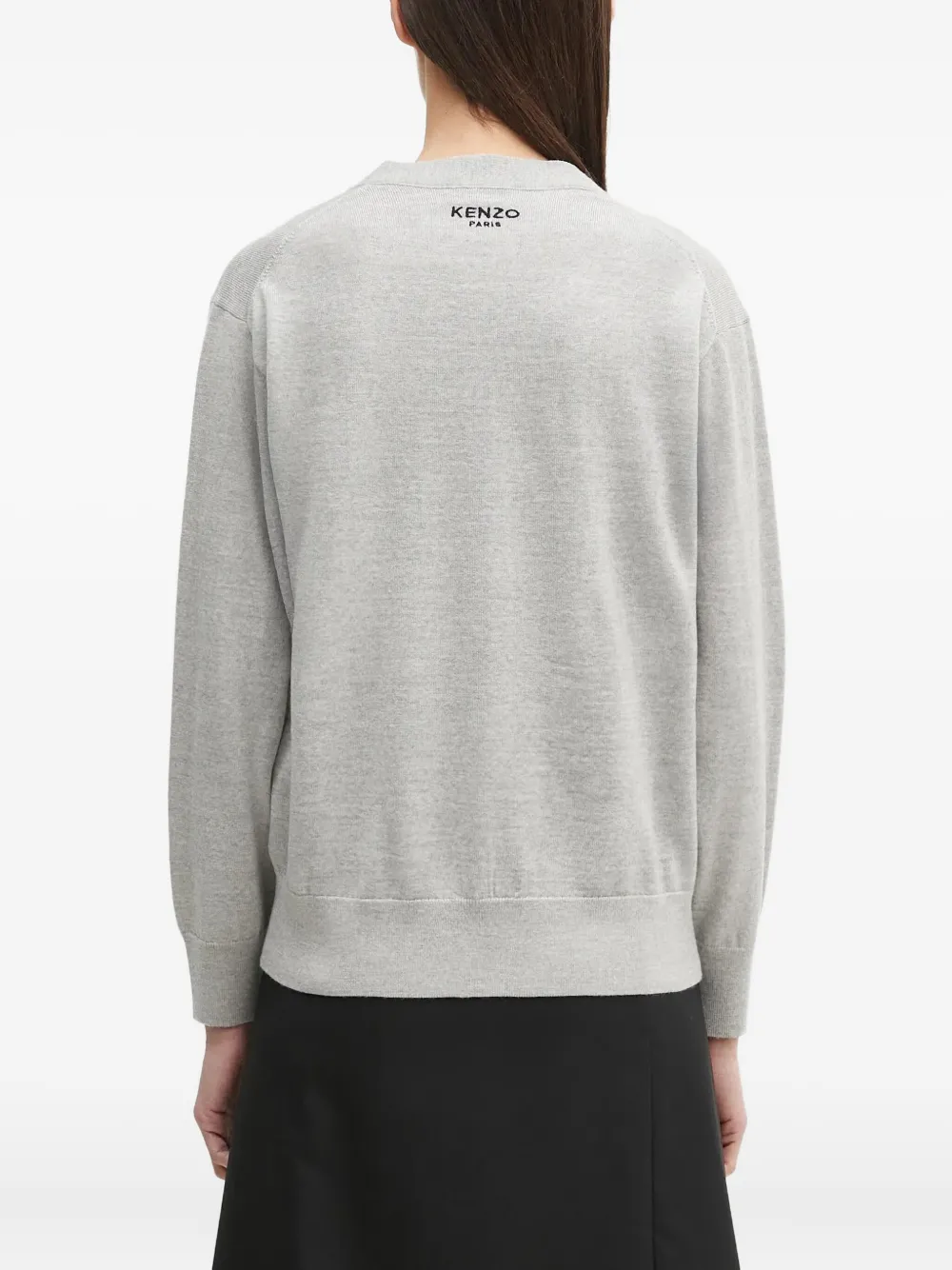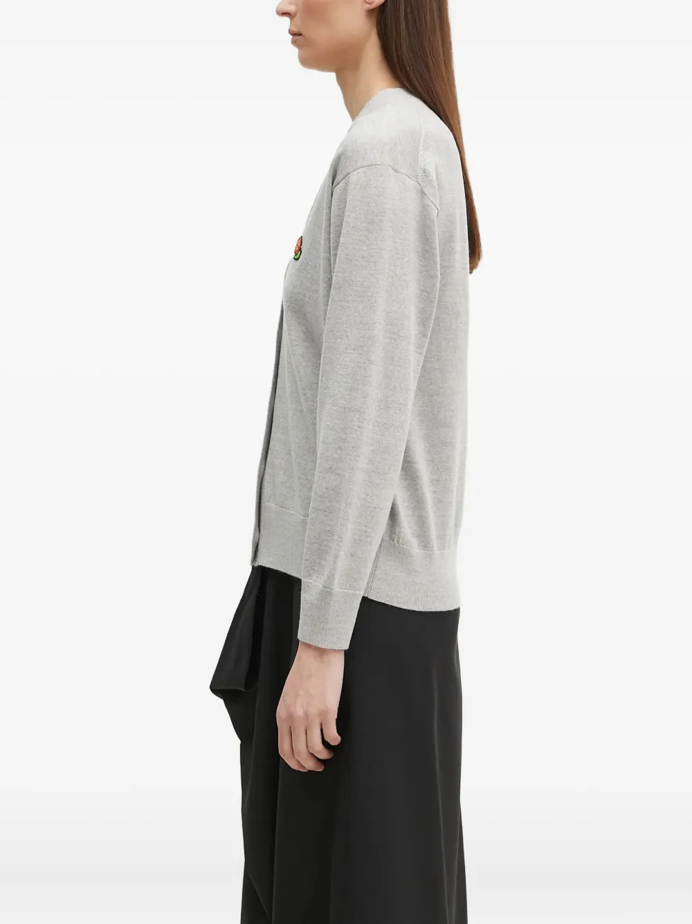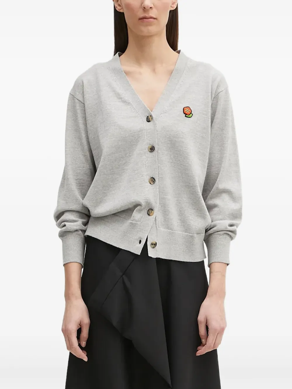 Бледно-серый V-образный вырез, застежка на пуговицы, длинные рукава, вышитые детали, ребристые отделки
