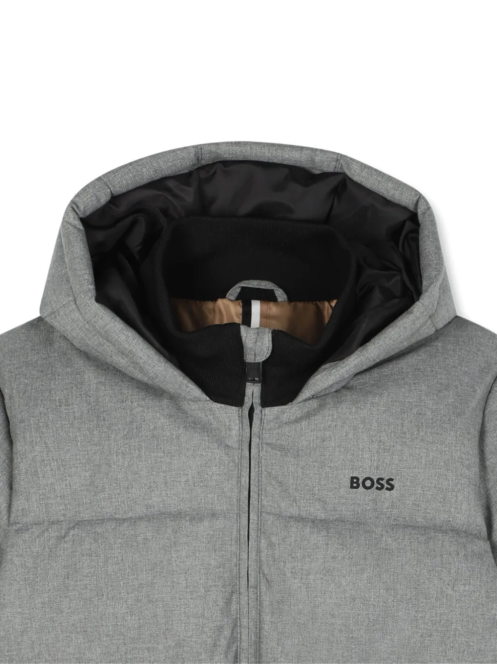 Пуховик с капюшоном BOSS Kidswear, серый 28 751₽