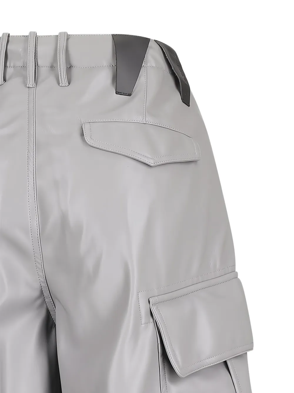 Серые карманы-карго, шлевки для ремня, прямой брючины, потайная застежка спереди