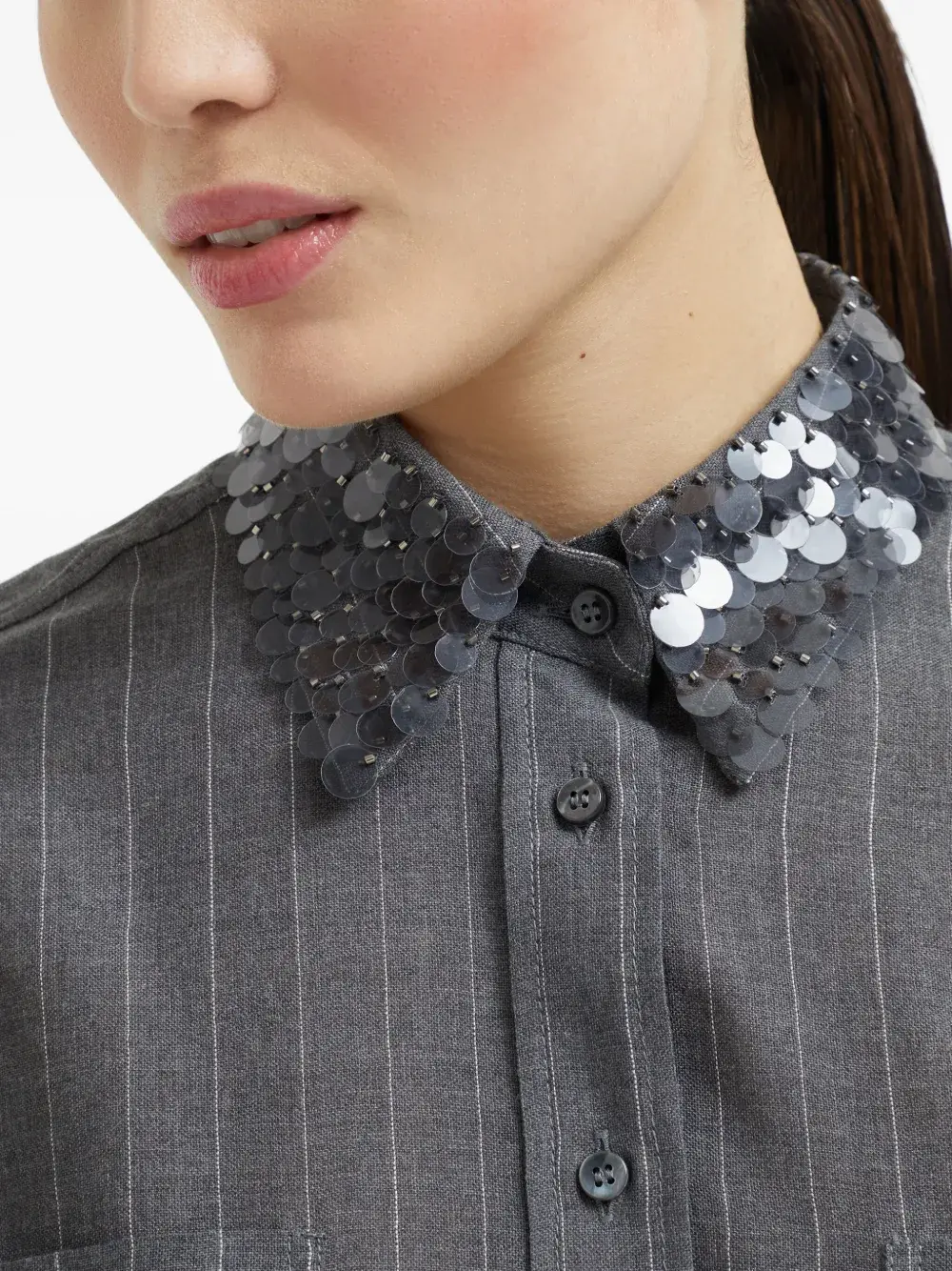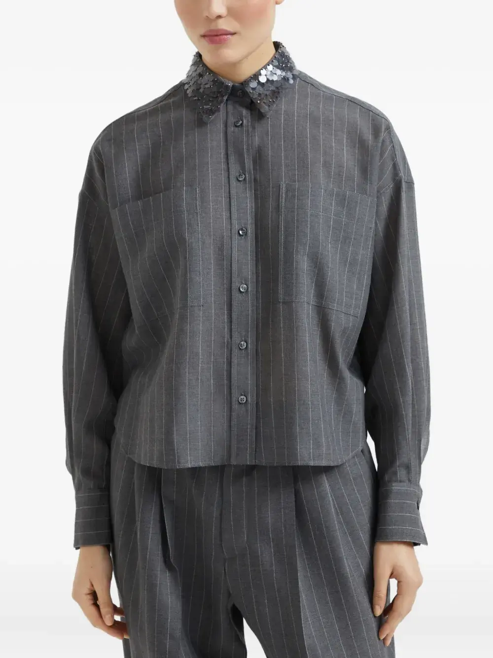 Рубашка в полоску Brunello Cucinelli, серый 244 435₽