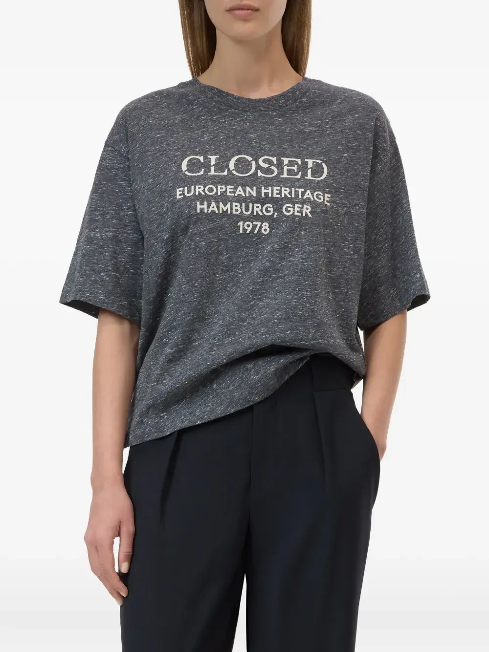 Темно-серый с короткими рукавами и круглым вырезом из хлопковой смеси