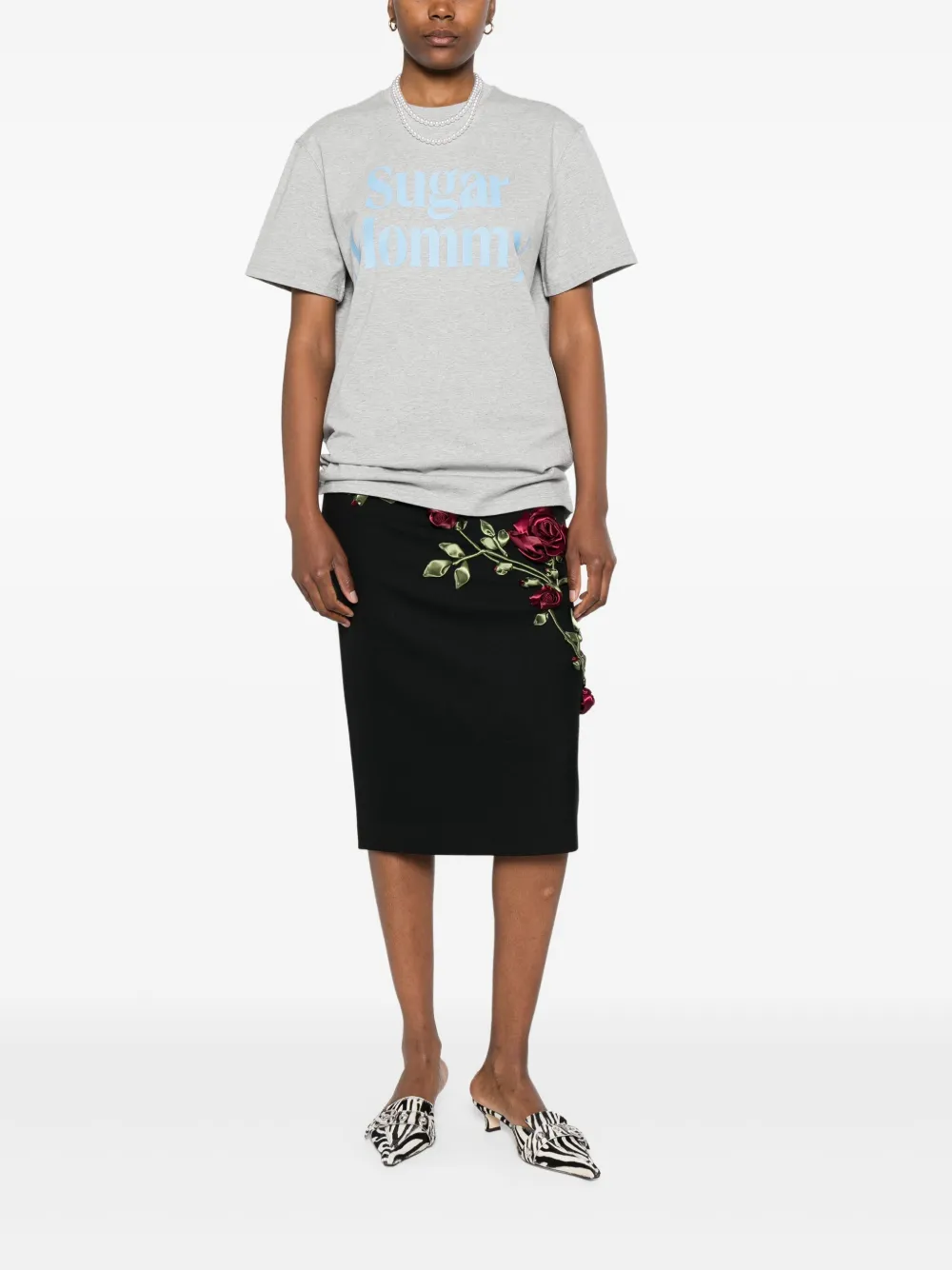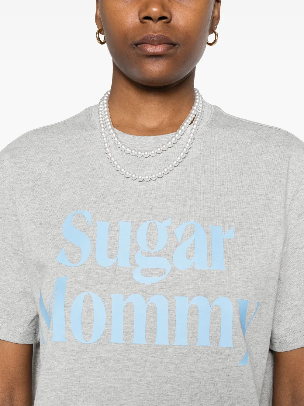 Серый круглый вырез горловины, графический принт на груди, короткие рукава, прямой подол