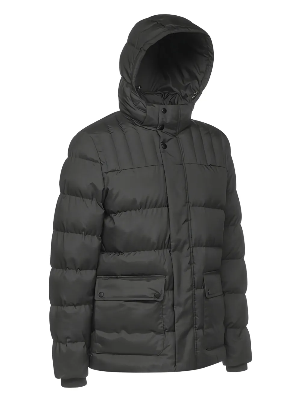 Черный стеганый дизайн, капюшон, застежка на кнопки, прорезные карманы, мягкая конструкция