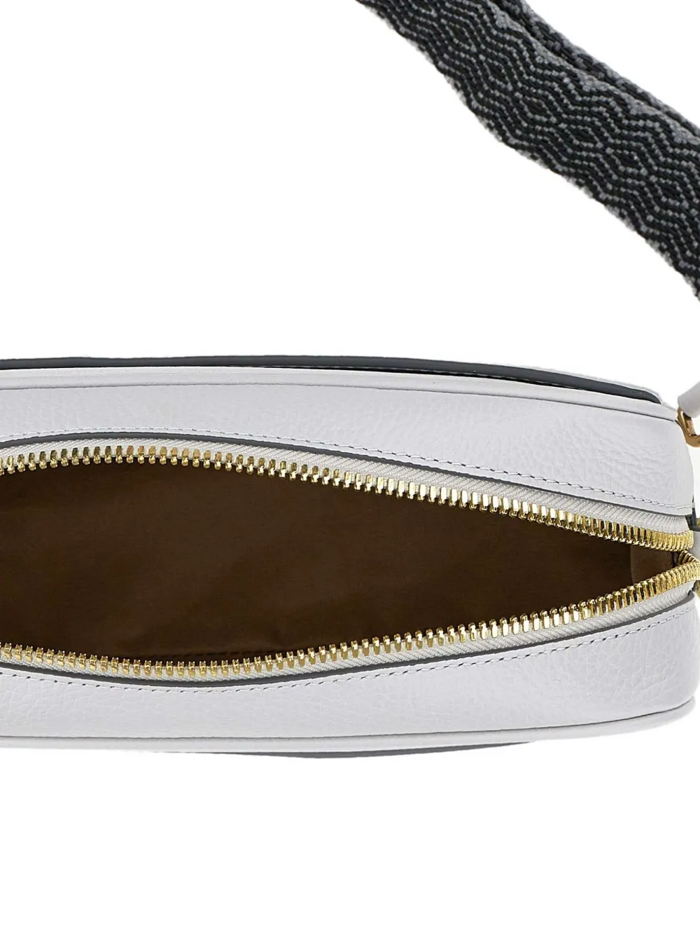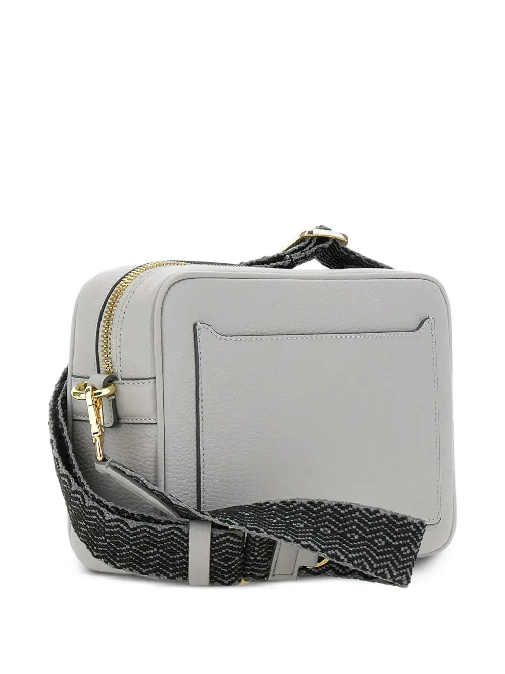 Светло-серая застежка-молния, внешний накладной карман, регулируемый ремешок, золотистая фурнитура