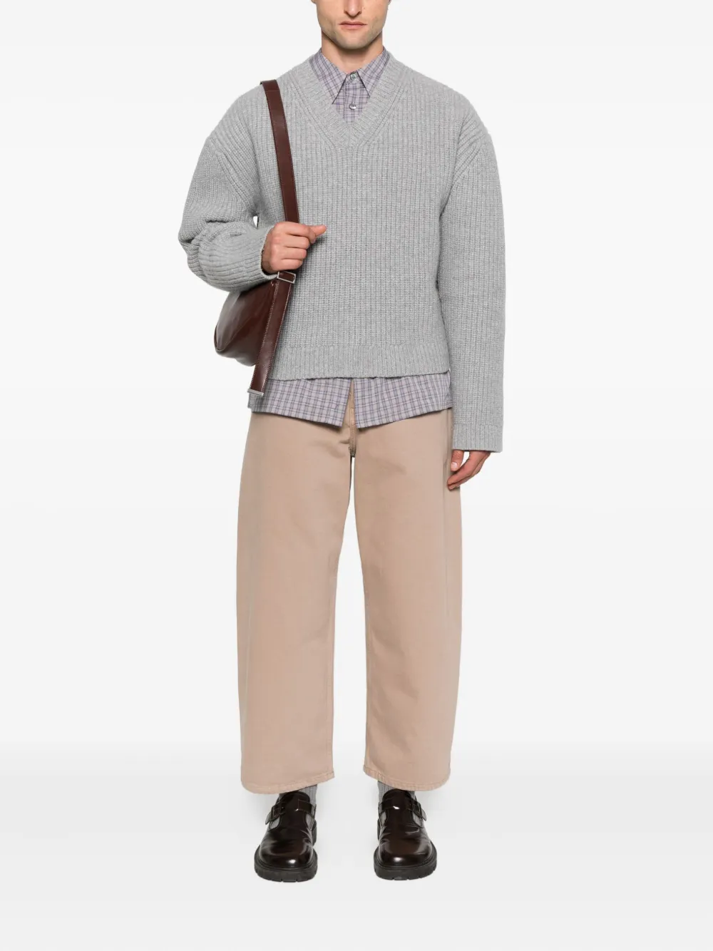 Свитер в рубчик с V-образным вырезом Nanushka, серый