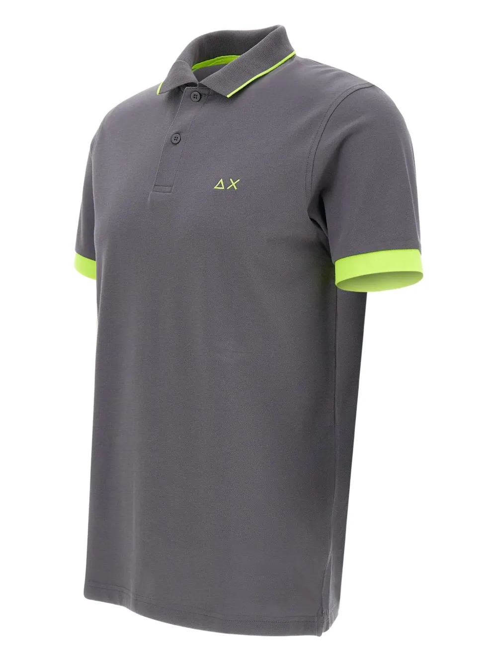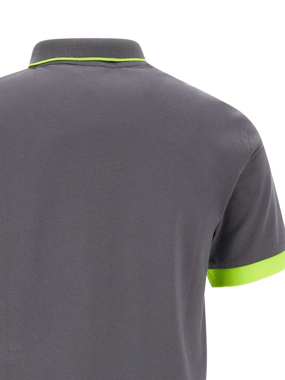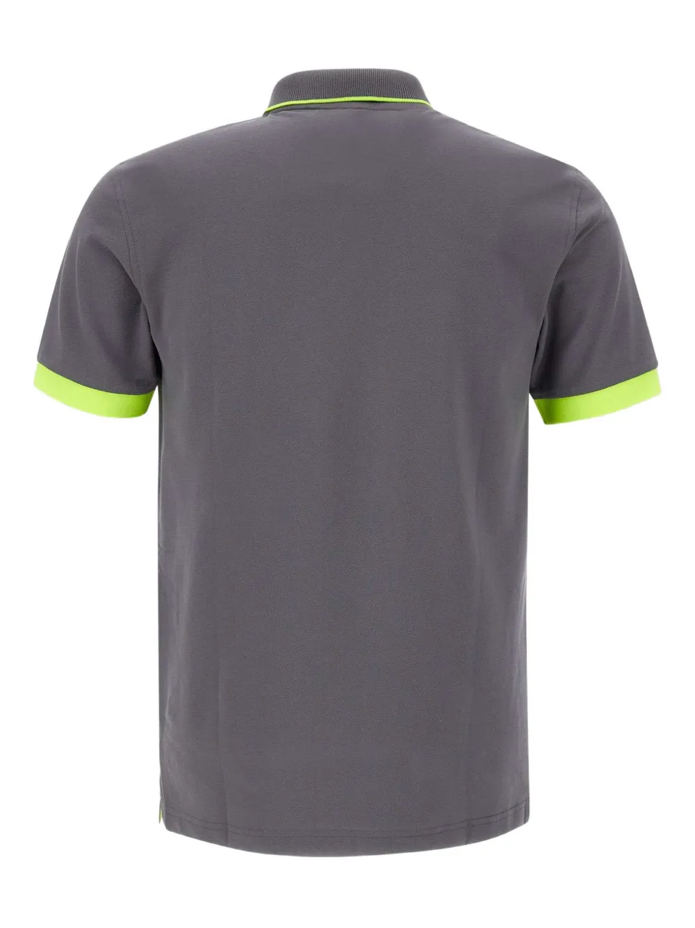 Серый контрастный воротник, неоново-зеленая отделка, вышитый логотип, короткие рукава