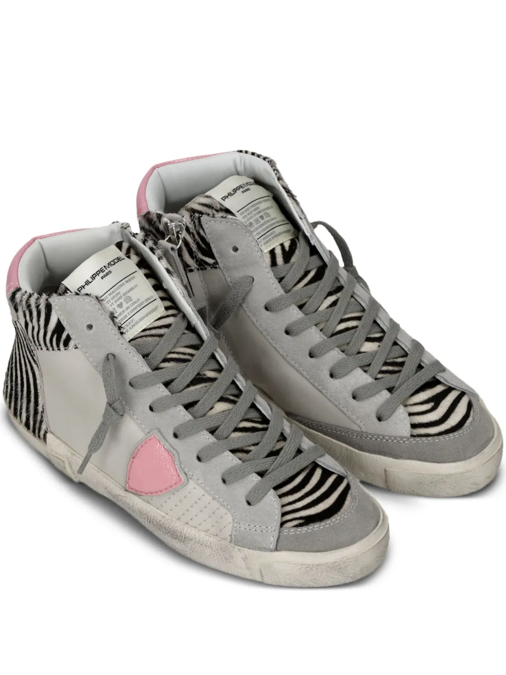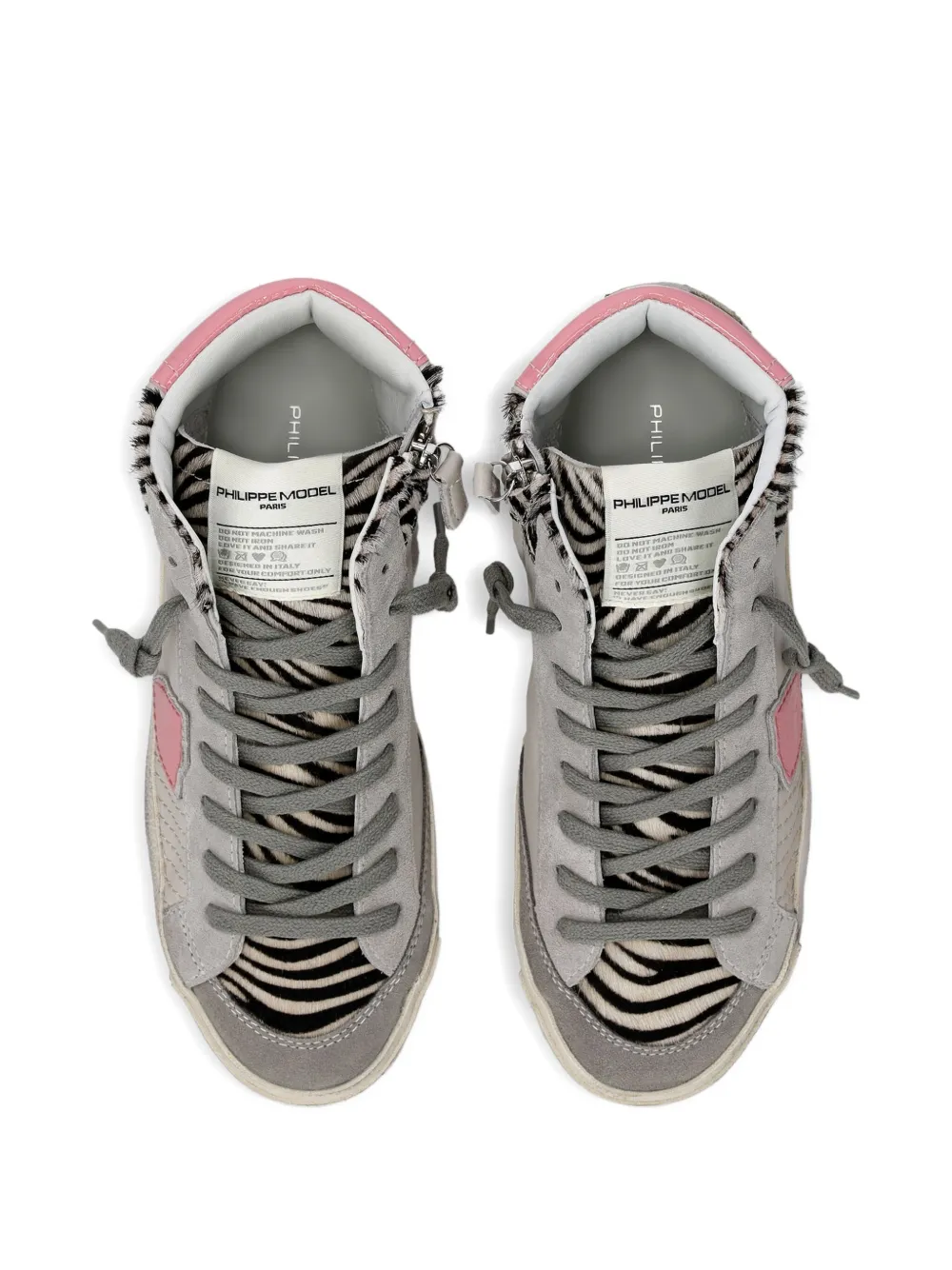 Высокие кеды с зебровым принтом Philippe Model Paris, серый