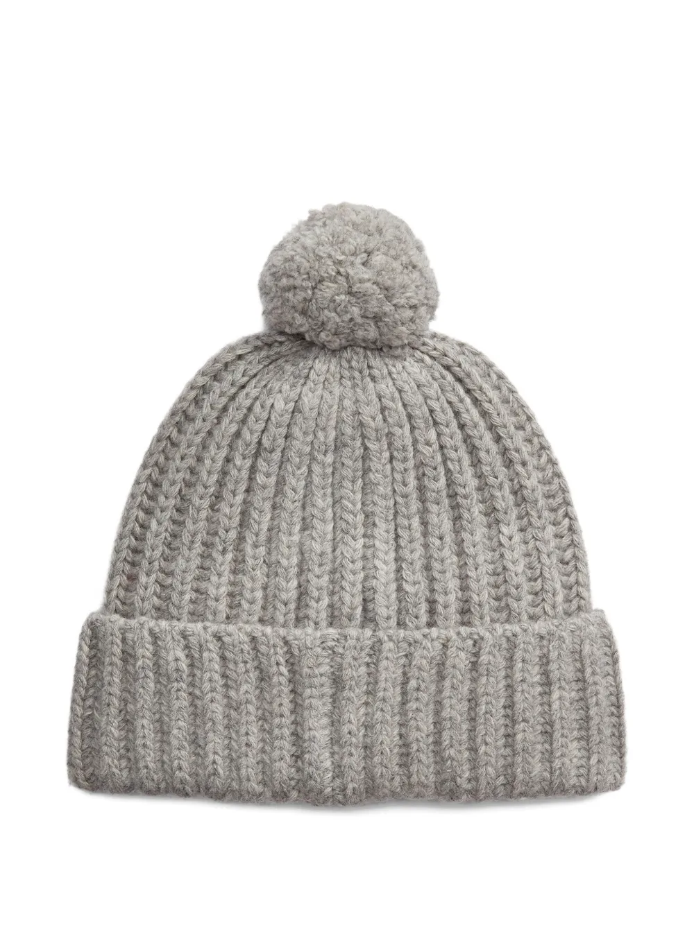 Шапка бини в рубчик с помпоном POLO RALPH LAUREN, серый