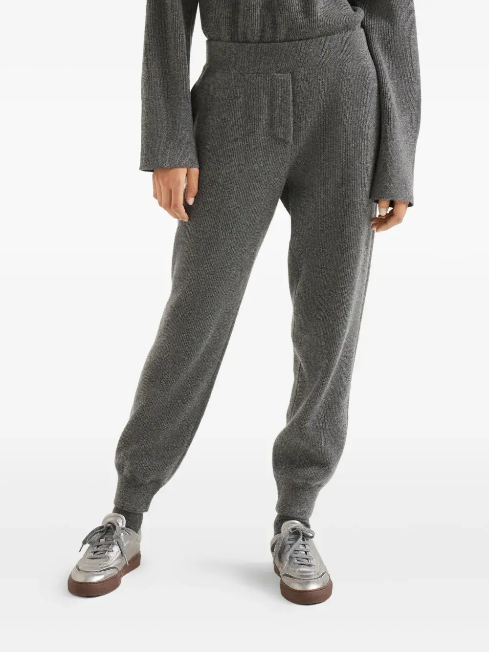 Кашемировые брюки в рубчик Brunello Cucinelli, серый