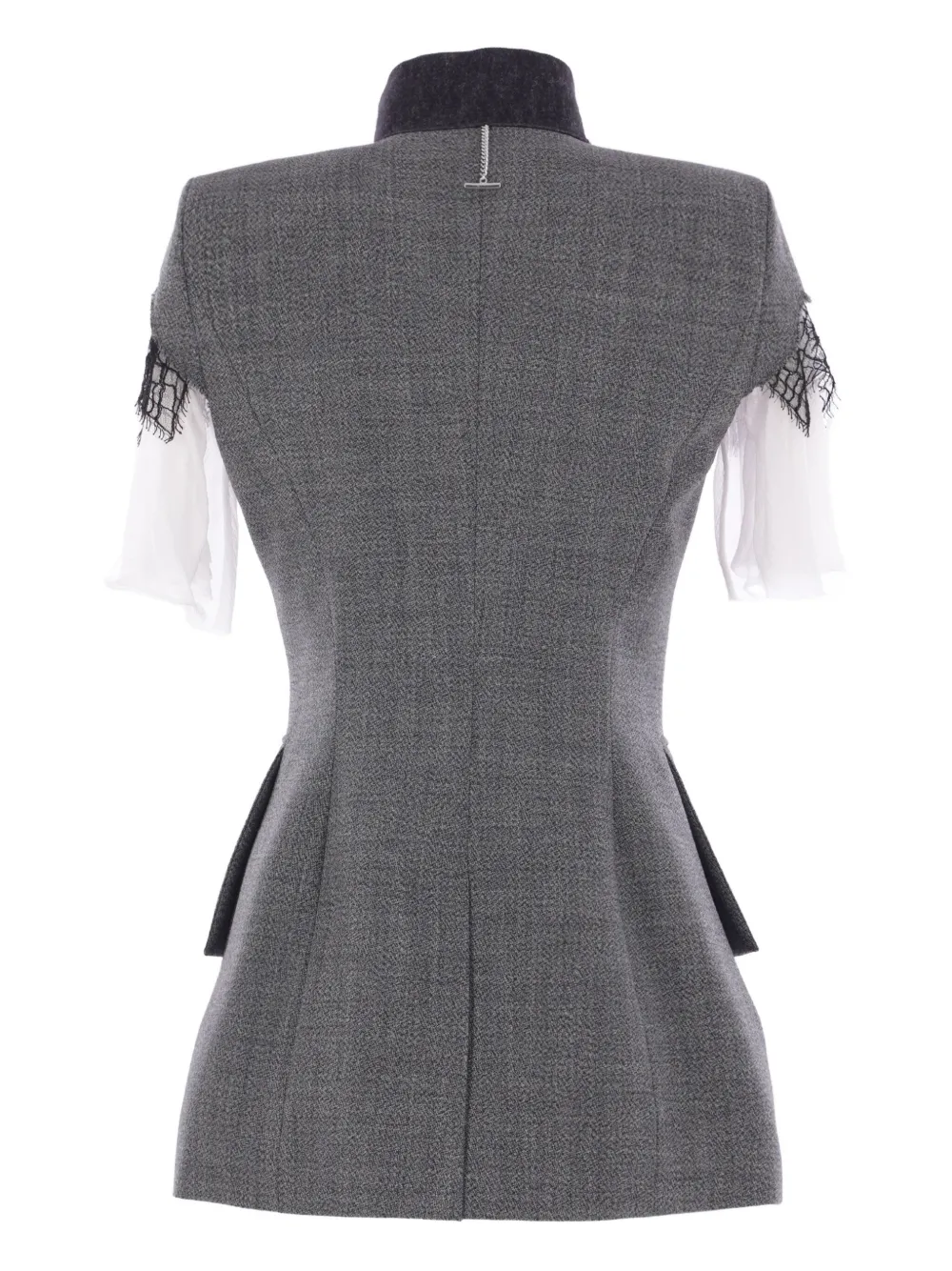 Серая шерсть, застежка на одну пуговицу, короткие рукава, кружевные вставки
