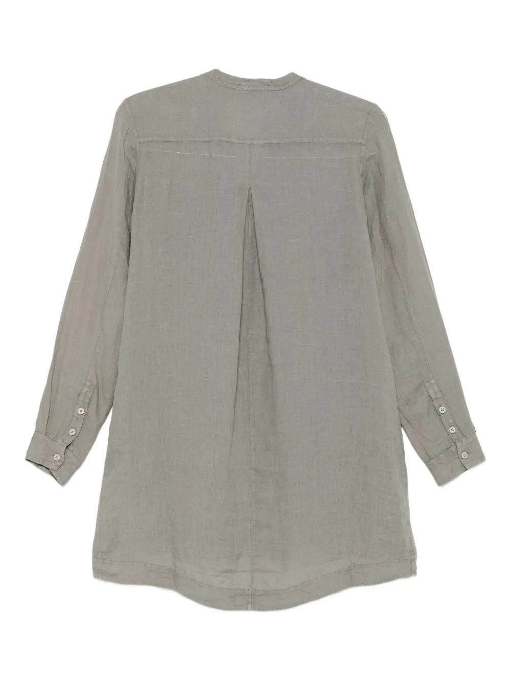 Средне-серый, длинные рукава, потайная застежка на пуговицы спереди, нагрудный карман