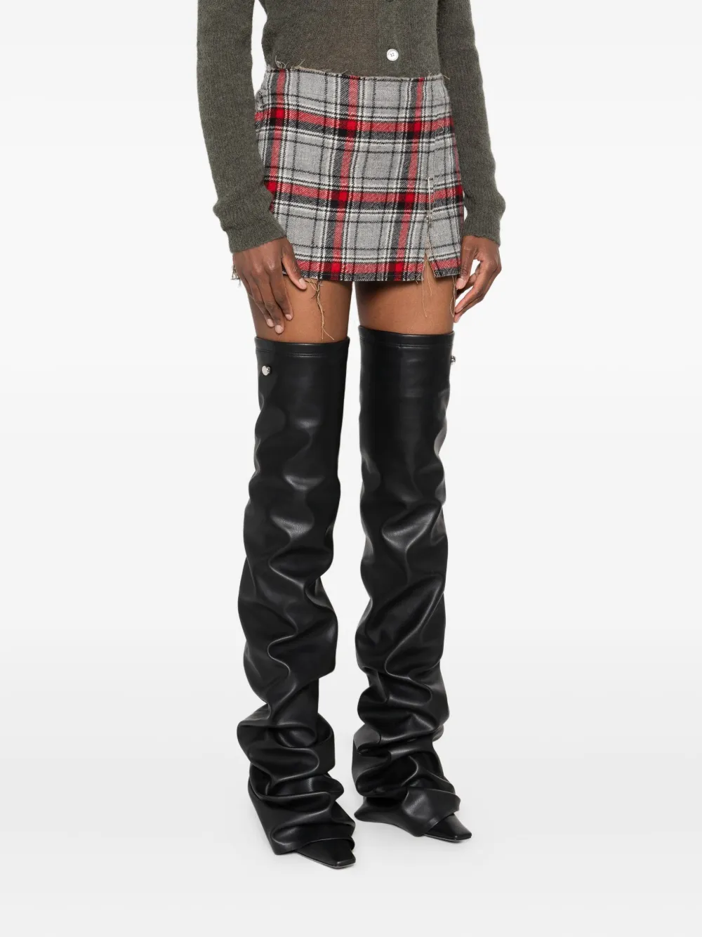 Клетчатая юбка мини с бахромой R13, серый