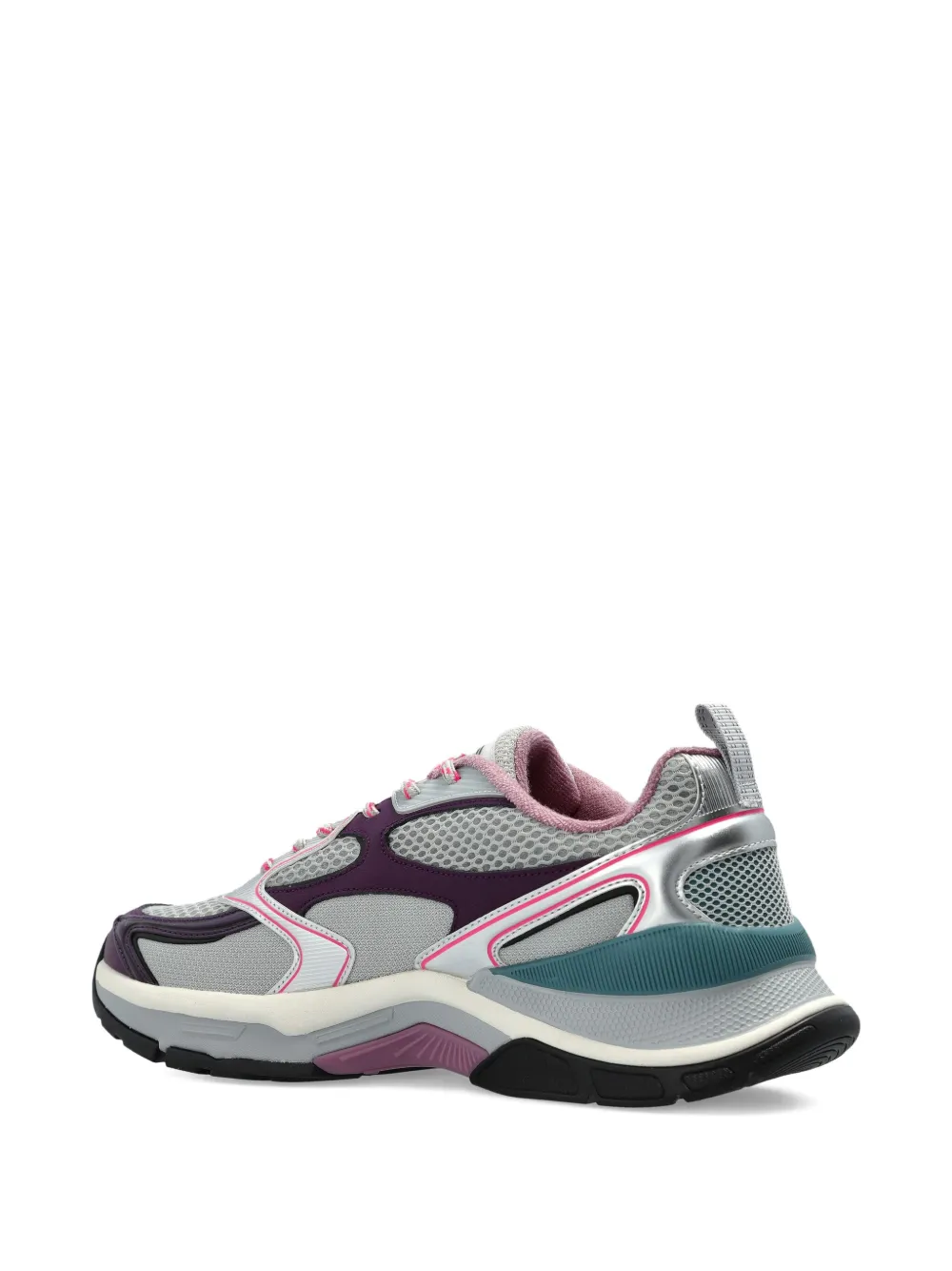 Верх из серой сетки, шнуровка спереди, язычок на пятке, мягкая накладка на щиколотке, массивная резиновая подошва