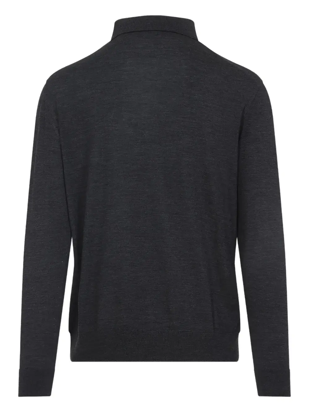 Шерсть среднего серого цвета с длинными рукавами, воротник-поло, застежка на пуговицы