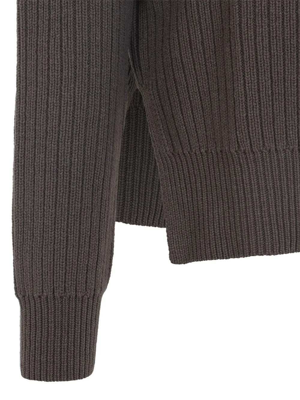 Ребристый свитер с воротником-стойкой Rick Owens, серый