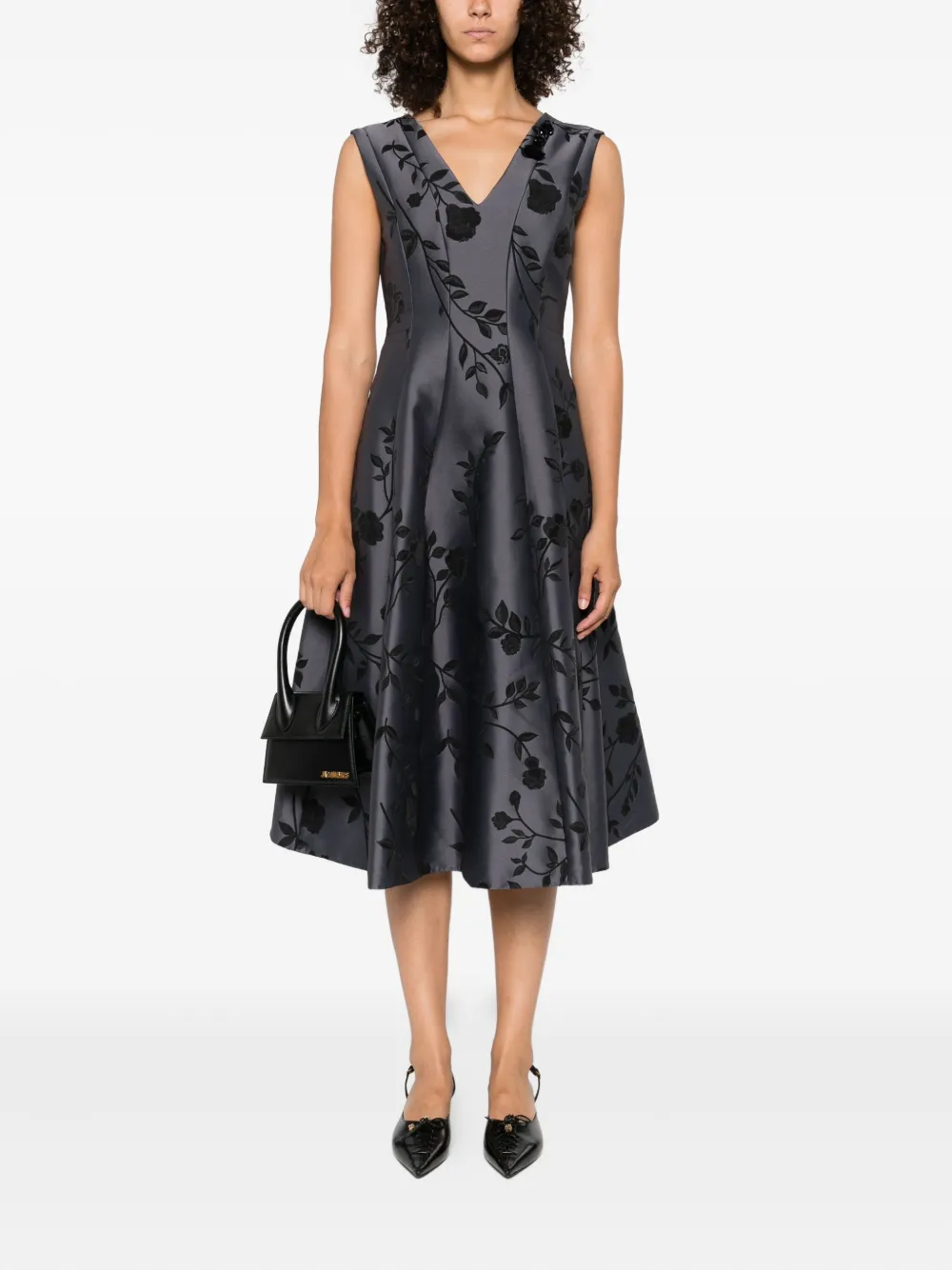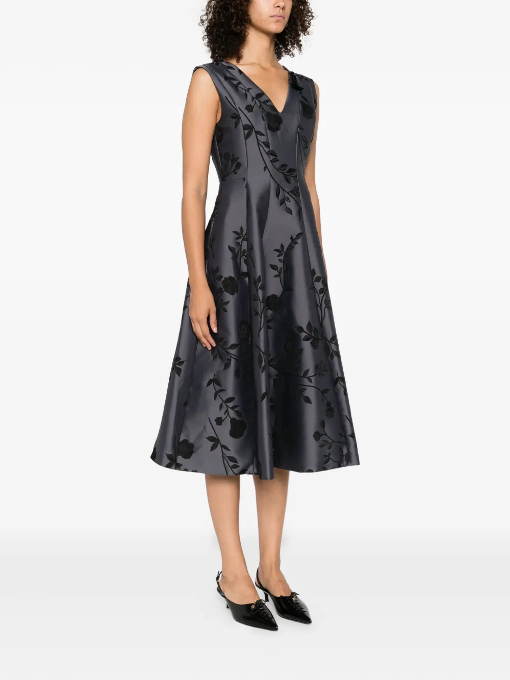 Платье мини с V-образным вырезом и цветочным принтом MAX MARA, серый