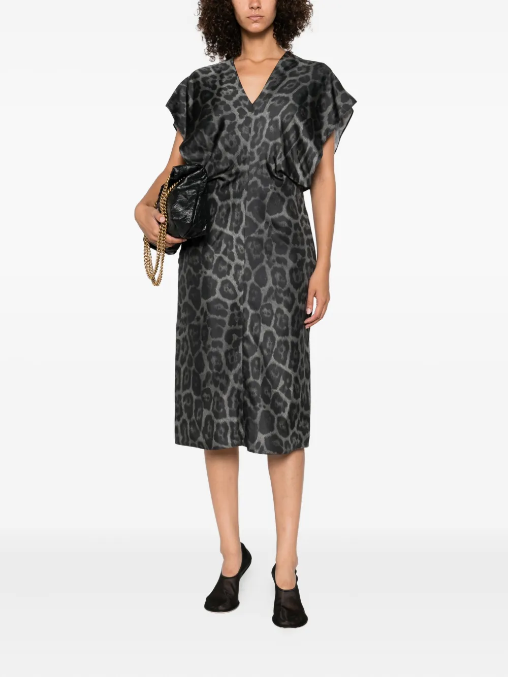 Платье с леопардовым принтом и V-образным вырезом STELLA MCCARTNEY, серый