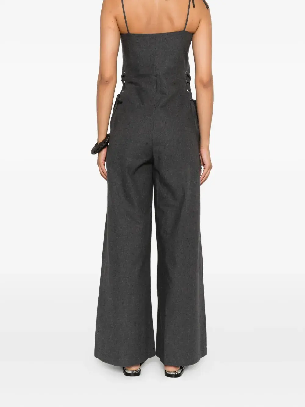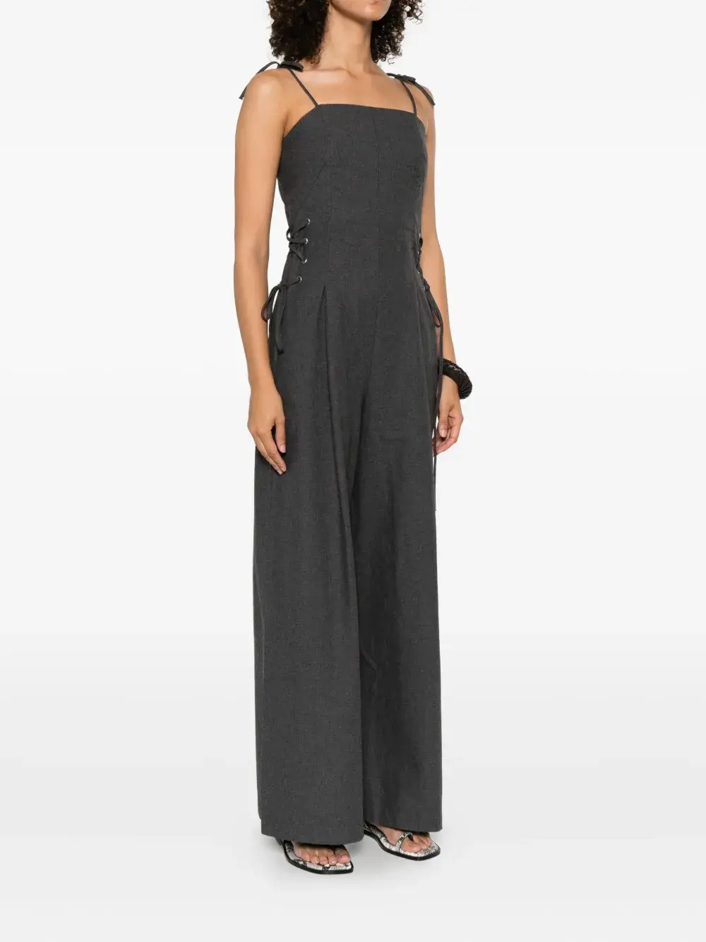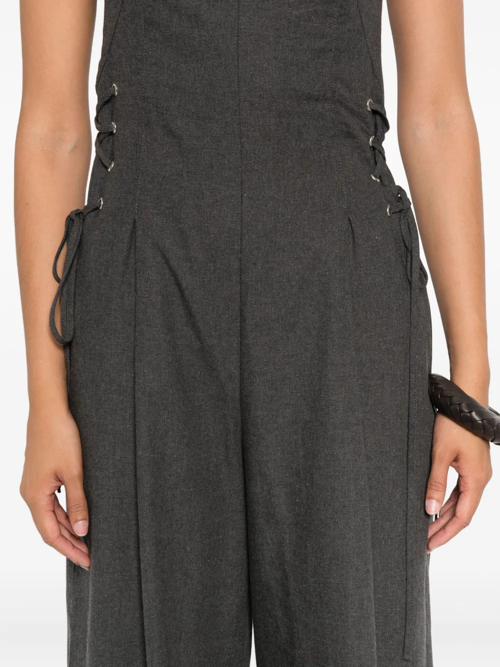 Серые широкие брюки со шнуровкой, плиссированные передние лямки с регулировкой, прямой подол