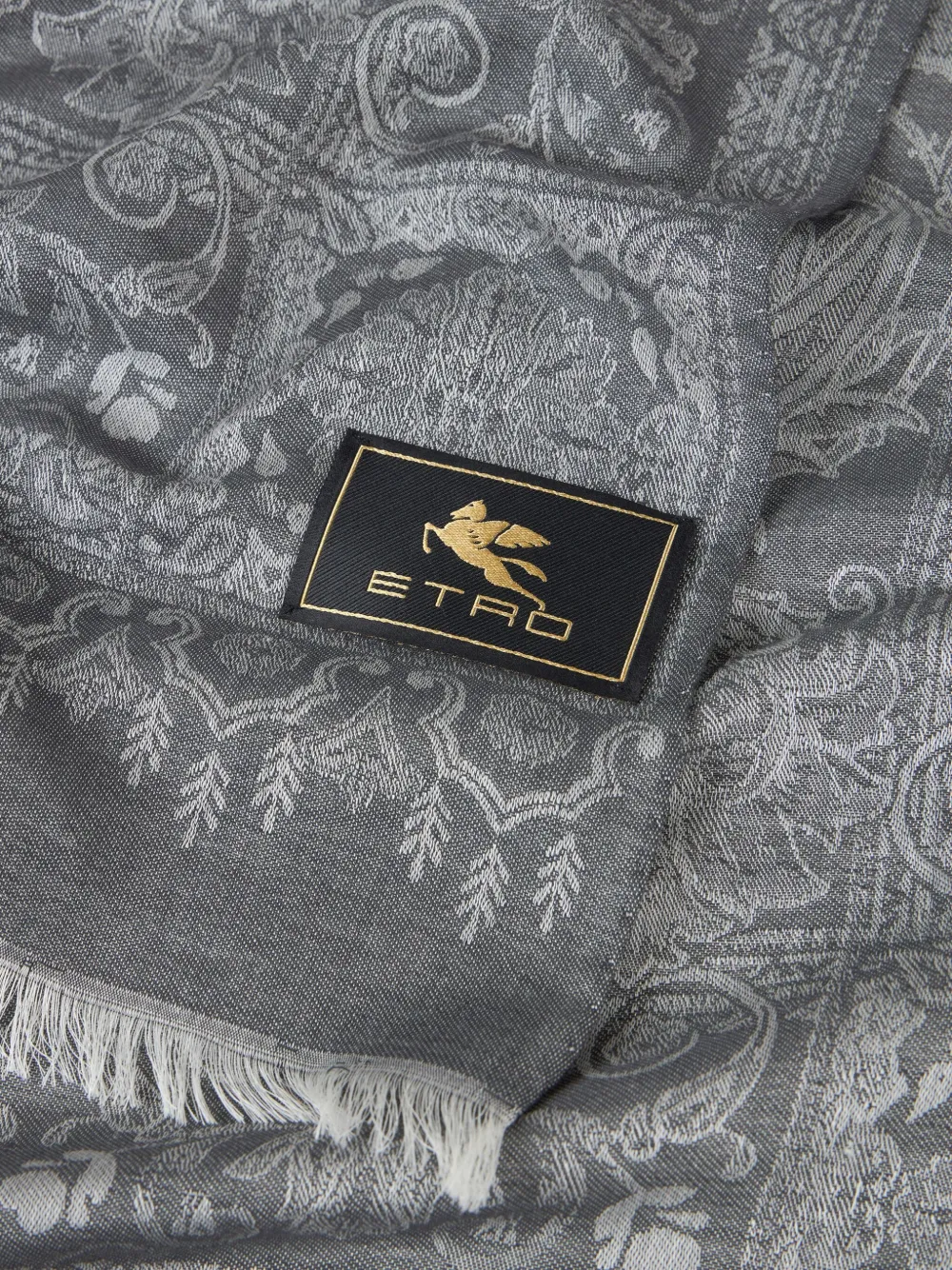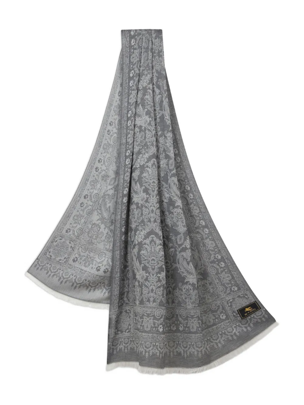 Шарф с бахромой и узором пейсли ETRO, серый 40 534₽