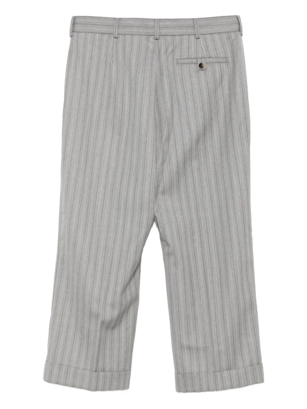 Серый узор в тонкую полоску, средняя посадка на талии, манжеты, шлевки для ремня, ширинка на пуговицах