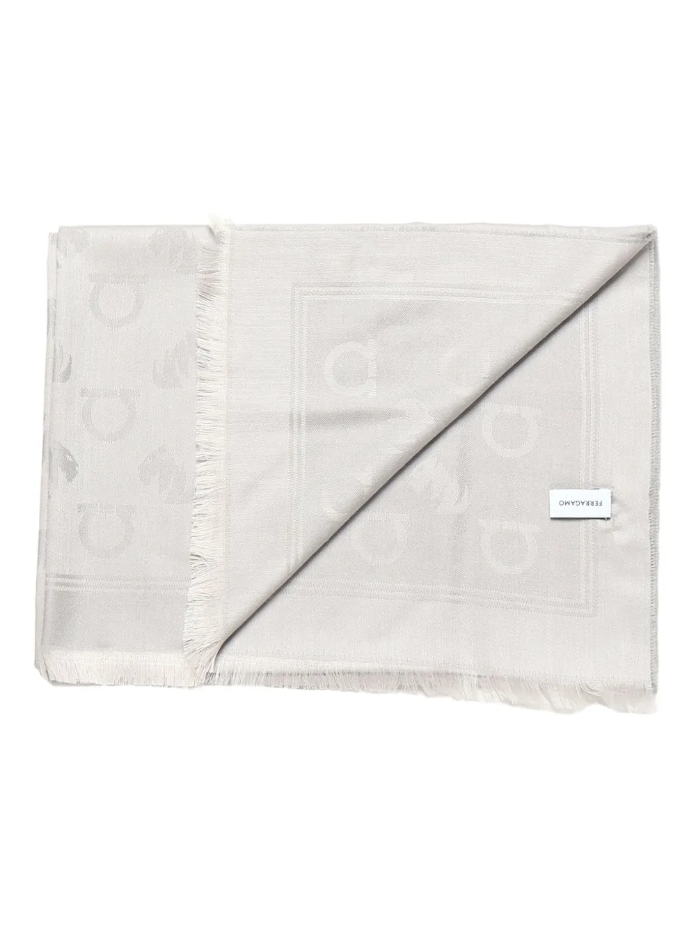 Шарф с бахромой и узором Gancini Ferragamo, серый