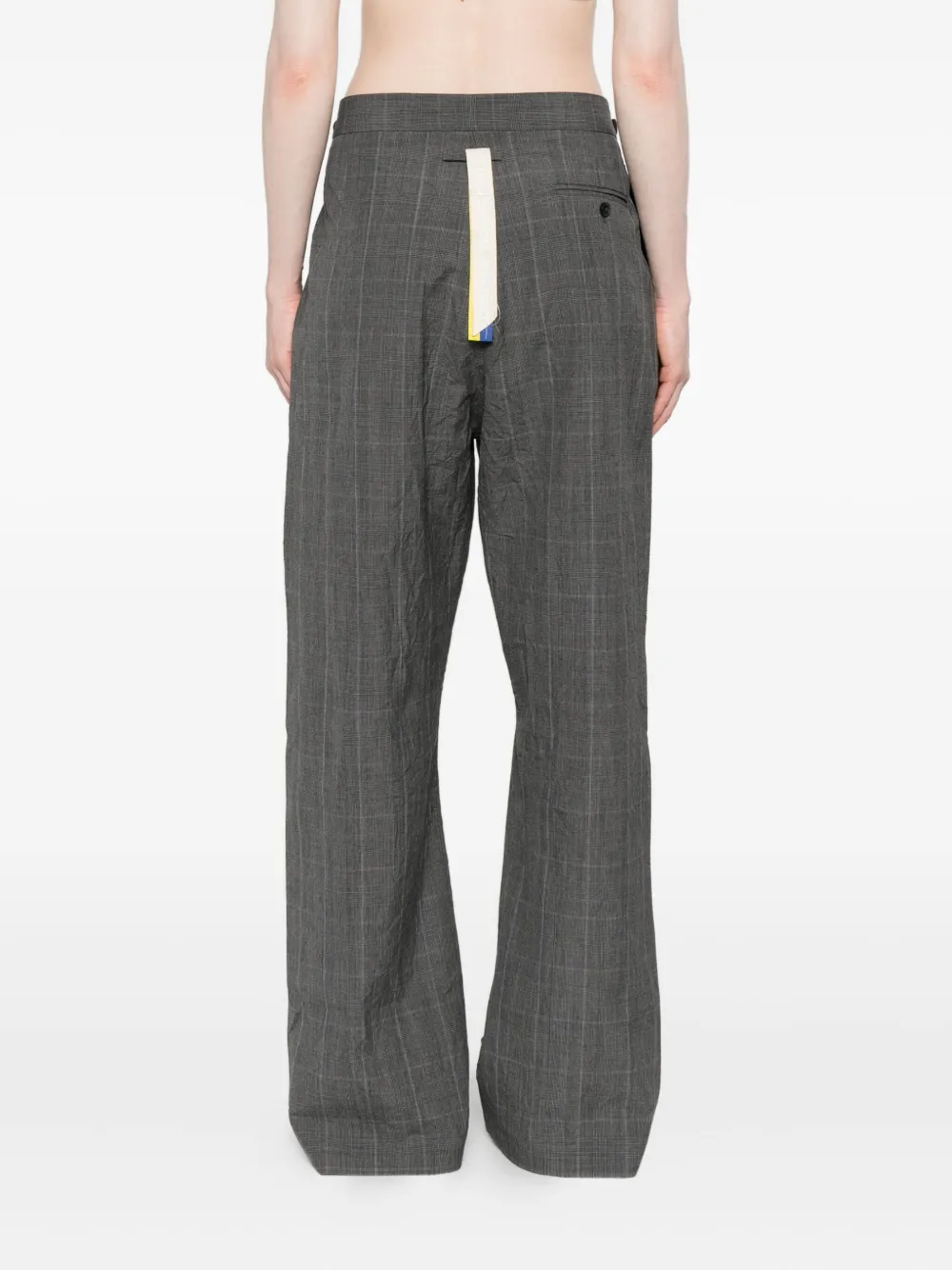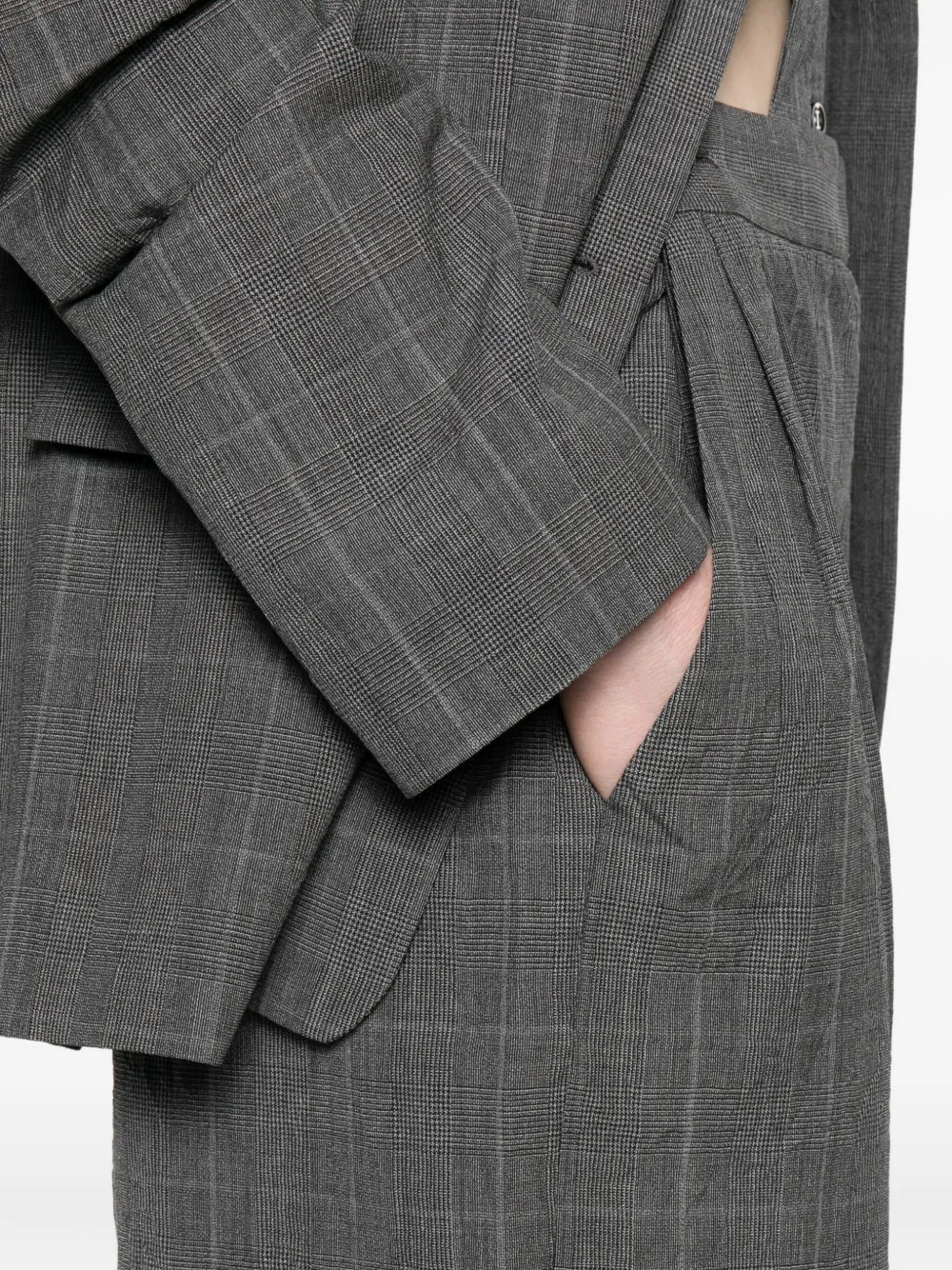 Серый клетчатый узор, плиссировка спереди, застежка на пуговицы, высокая талия, шерсть