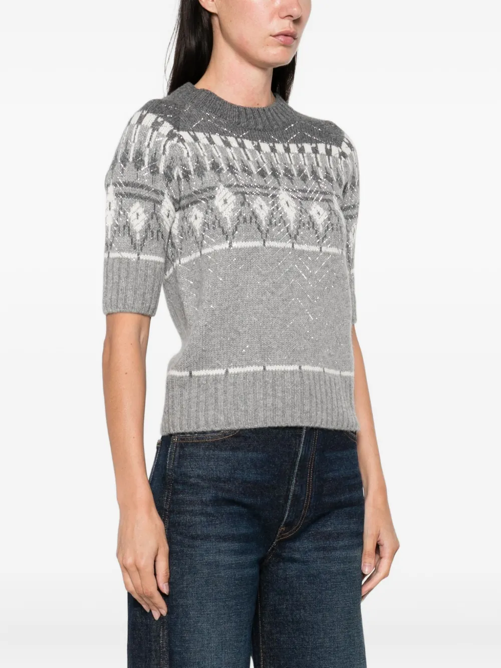 Топ с короткими рукавами и узором Ermanno Scervino, серый
