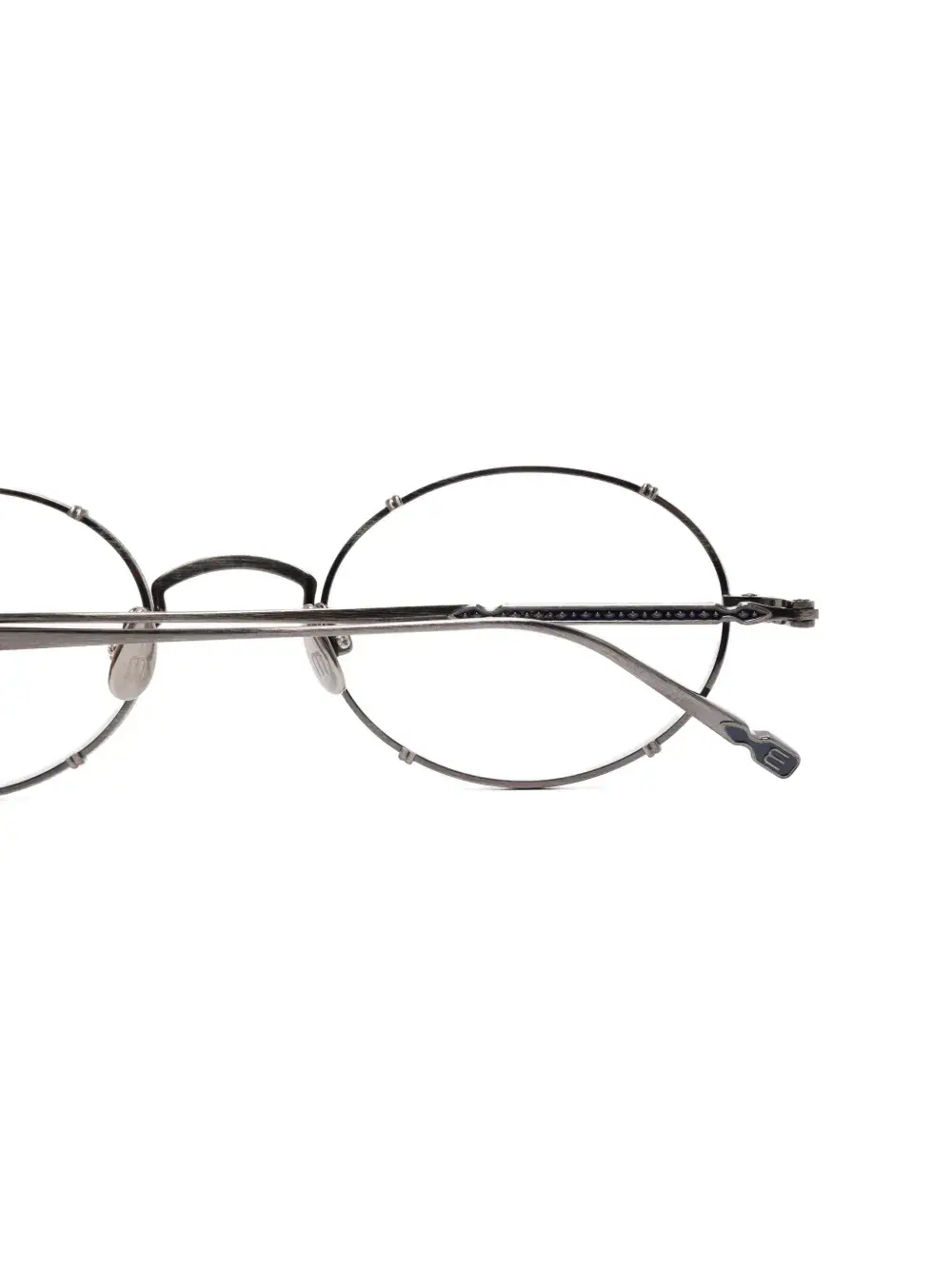 Серая овальная оправа с носоупорами и прозрачными линзами. Эти очки поставляются с защитным футляром. Все очки FARFETCH продаются в оправах без диоптрий.