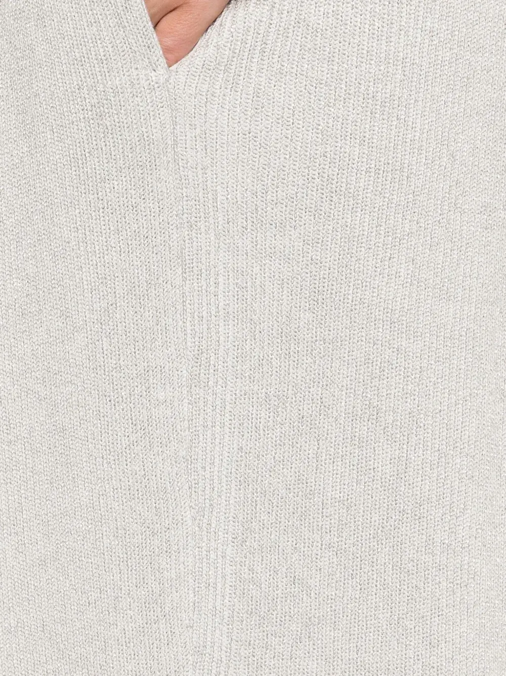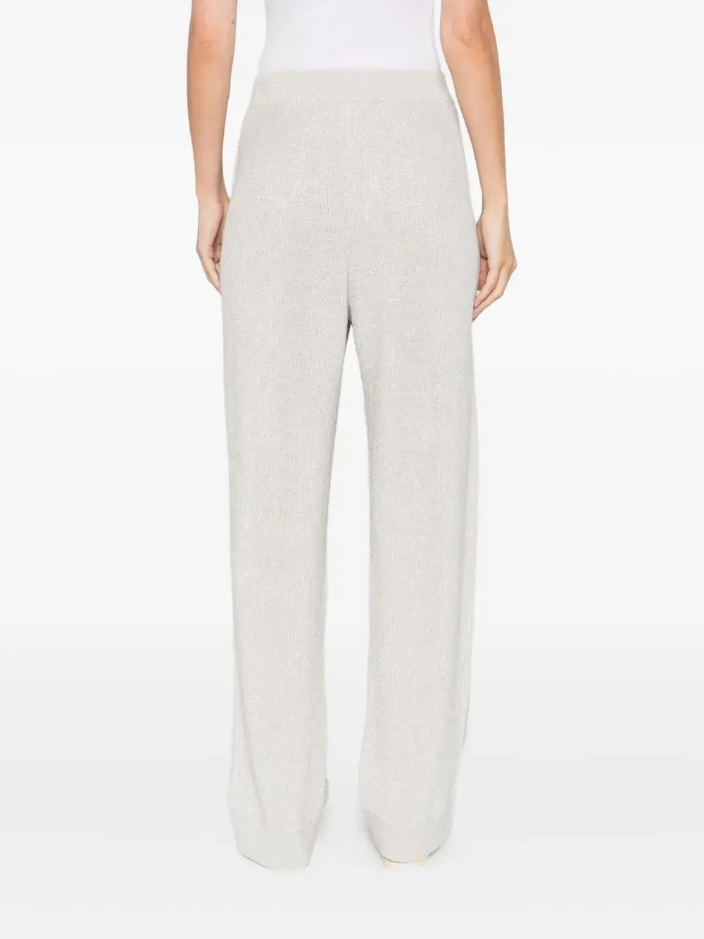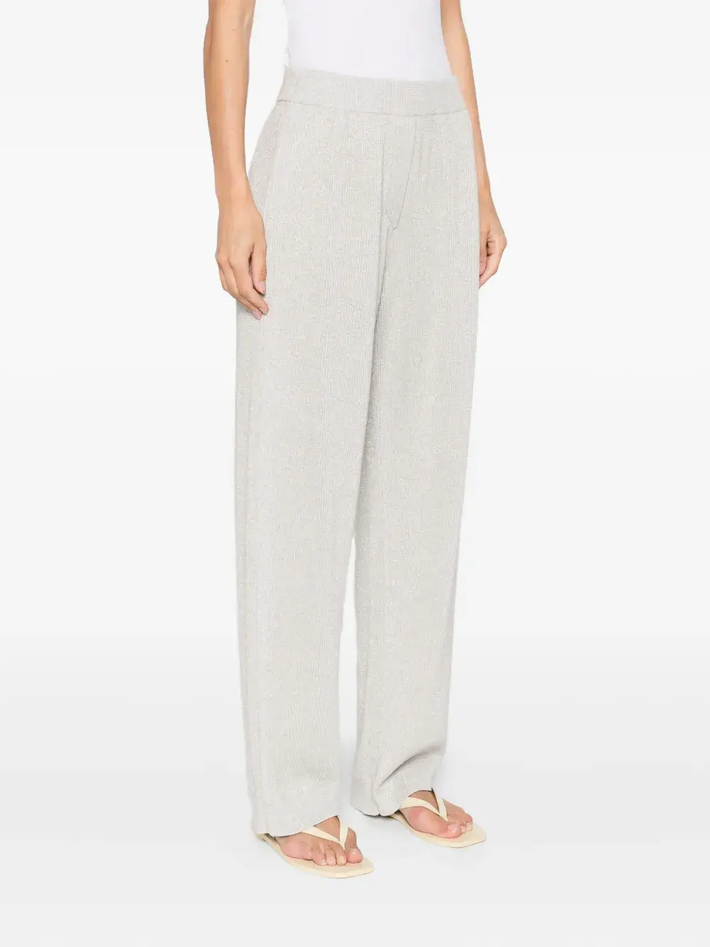 Серый трикотаж в рубчик, прямой покрой, эластичный пояс, средняя посадка, укороченная длина