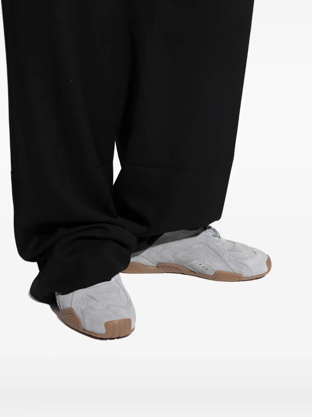 Верх из серой замши, шнуровка, низкий верх, резиновая подошва