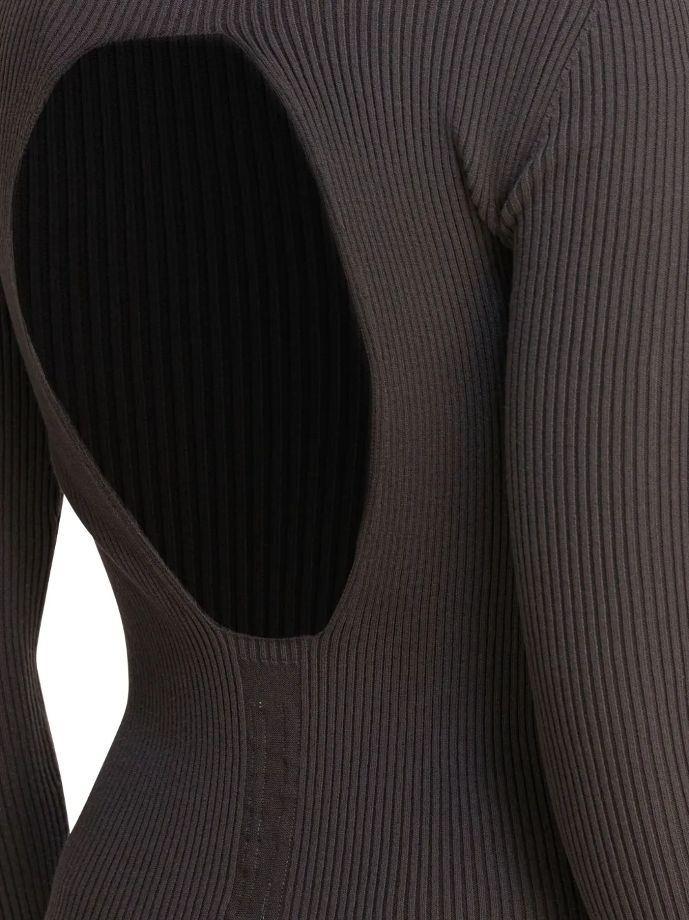 Темно-серый ребристая фактура, длинные рукава, открытая спина, овальный вырез, длина миди
