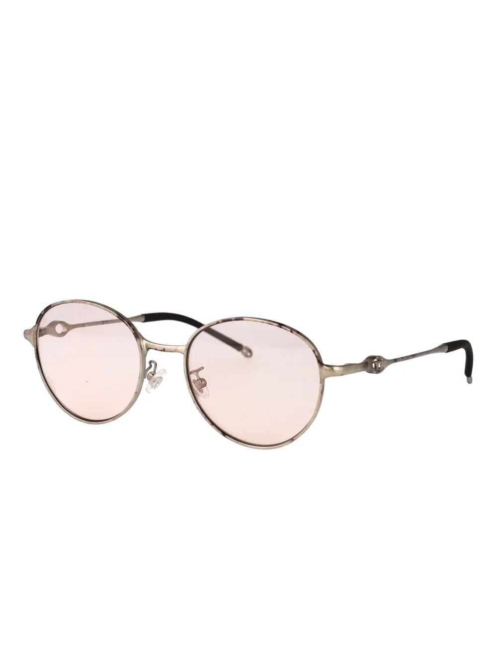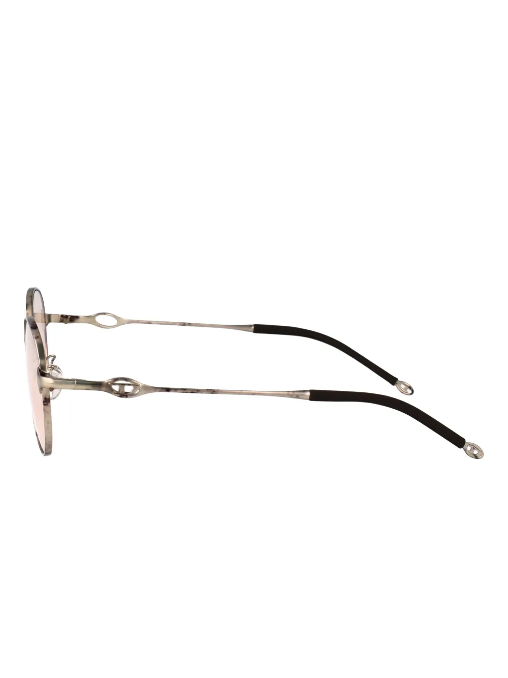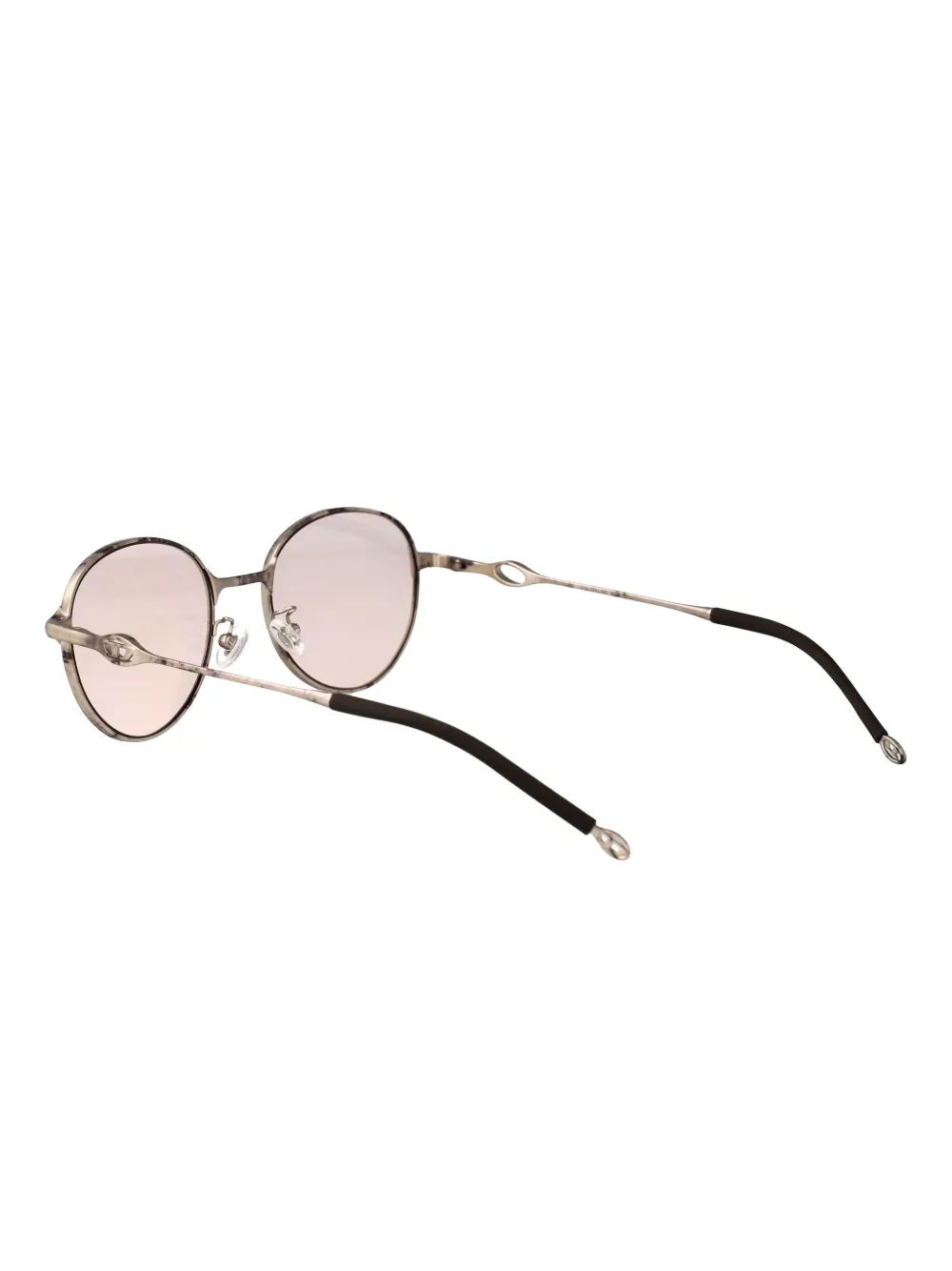 Овальная оправа серебристого тона, тонированные линзы, носоупоры. Очки поставляются с защитным футляром.