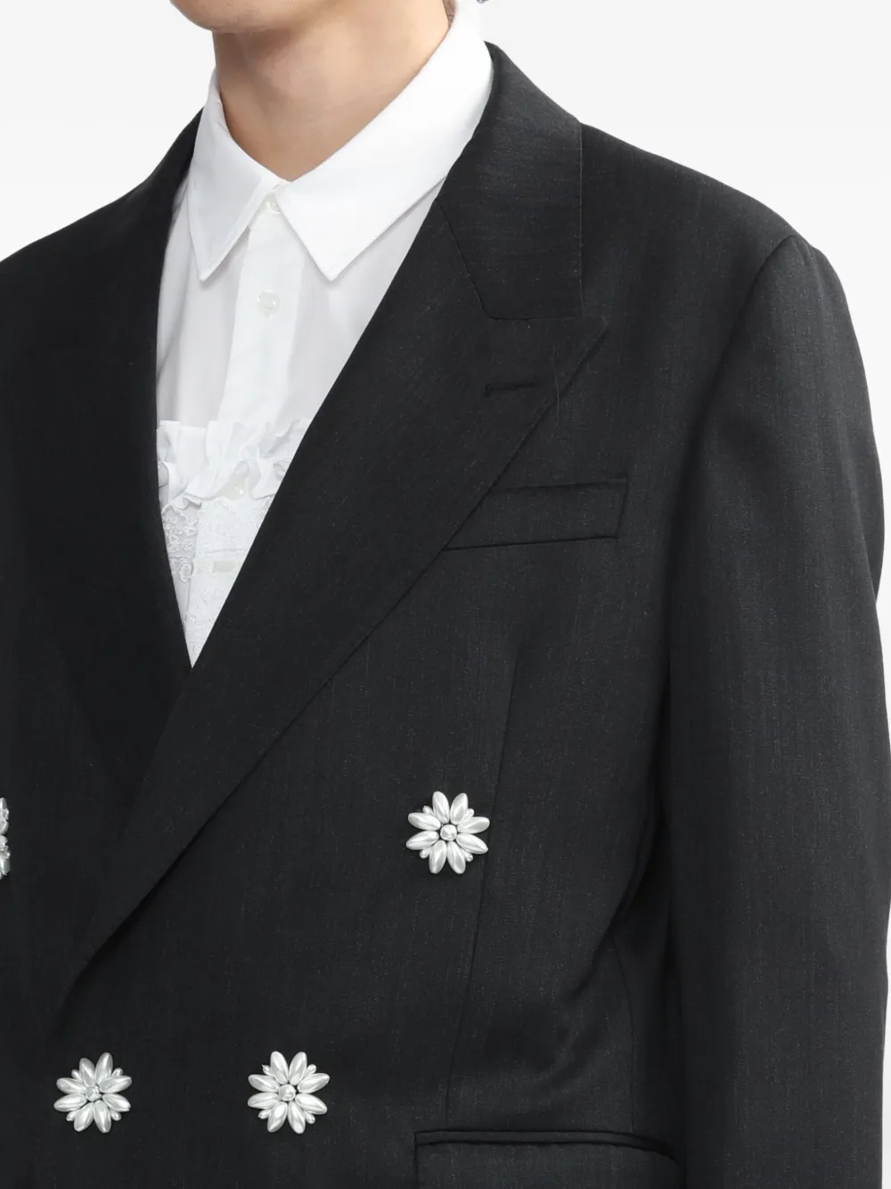 Двубортный блейзер с цветочным декором Simone Rocha, серый 122 054₽