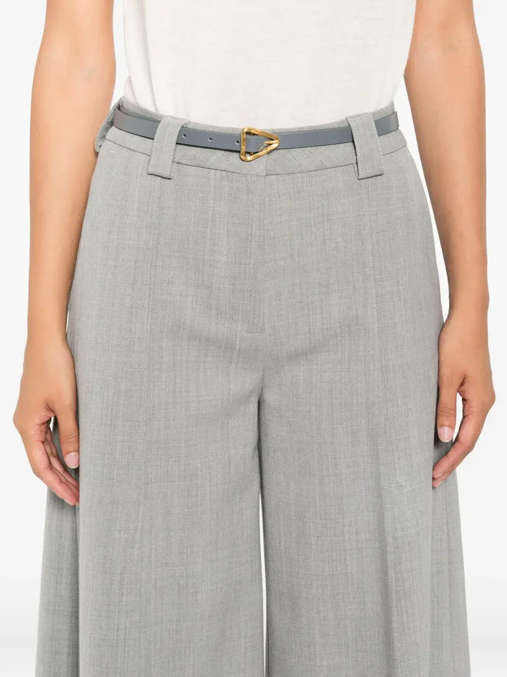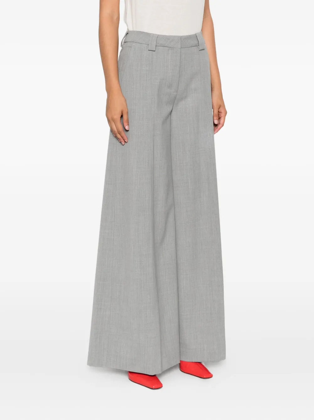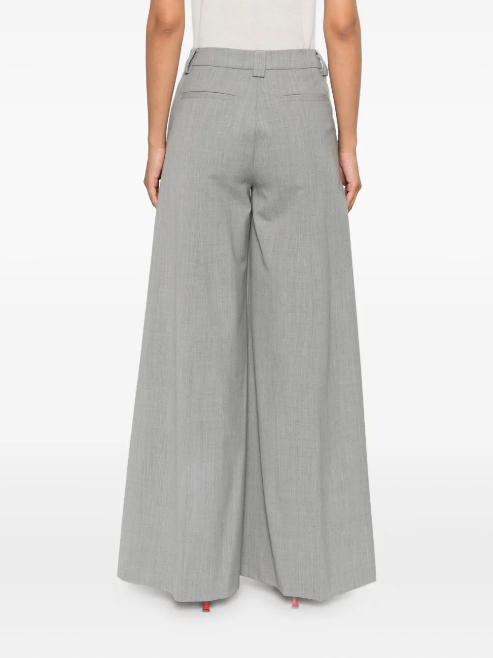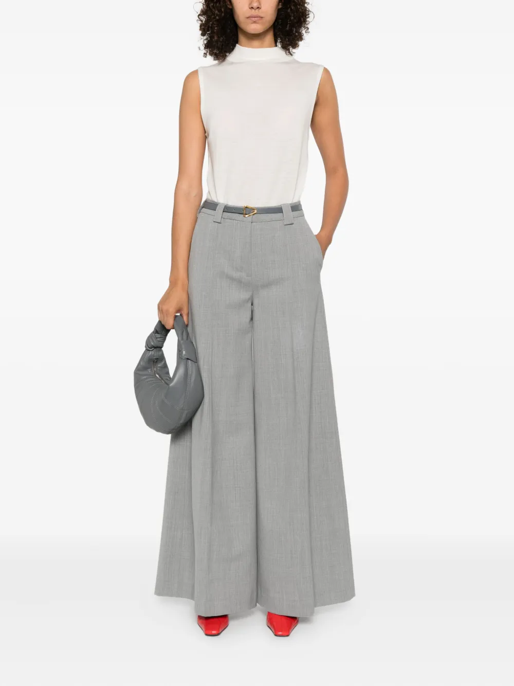 Серые плиссированные брюки спереди, широкие штанины, высокая талия, прямой подол, застежка по центру спереди