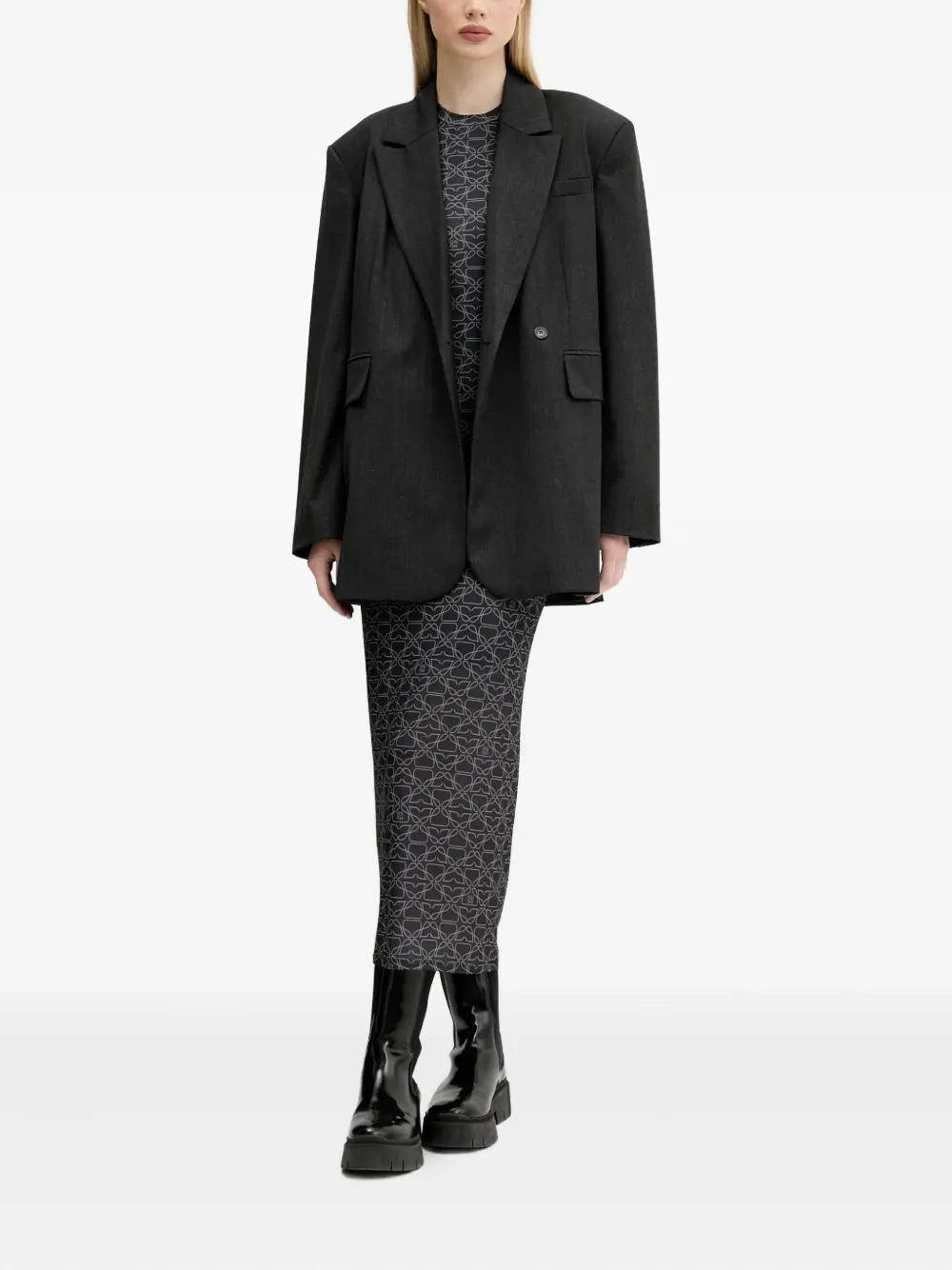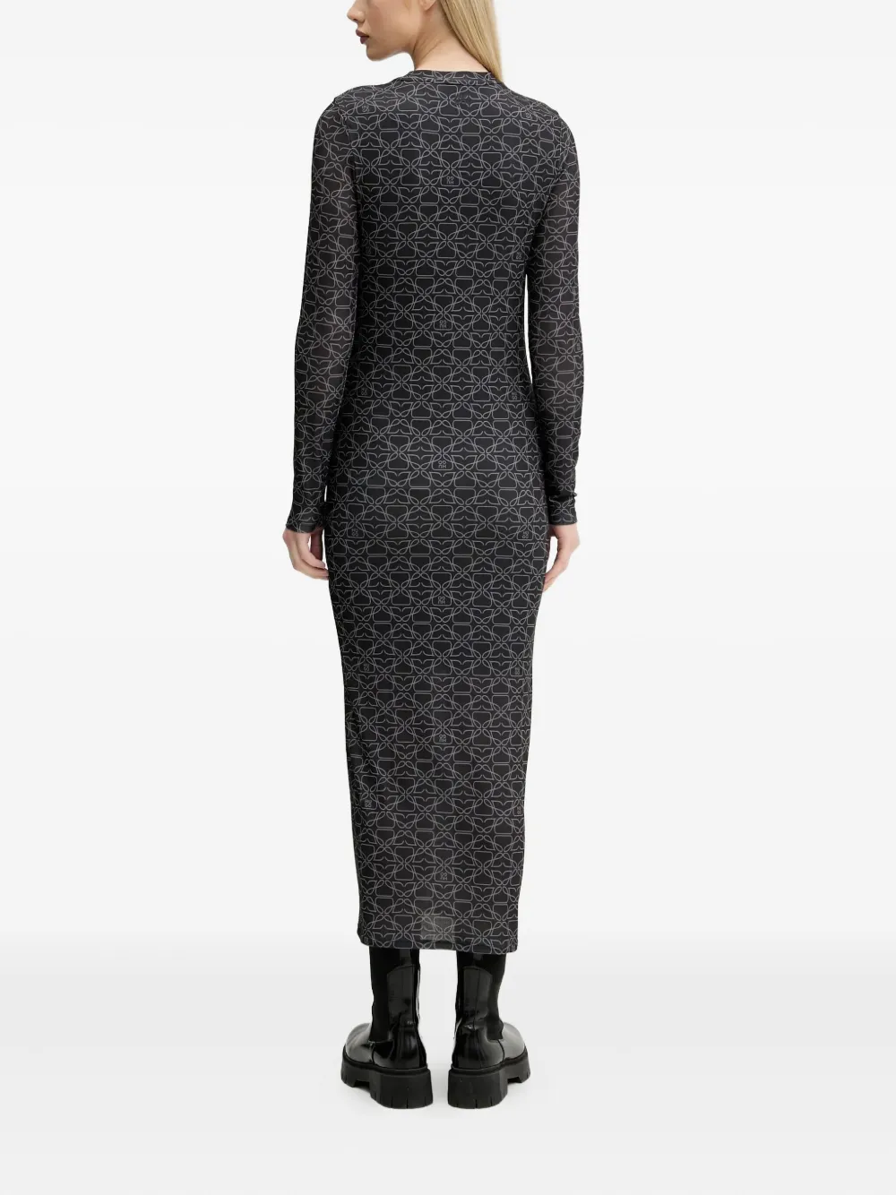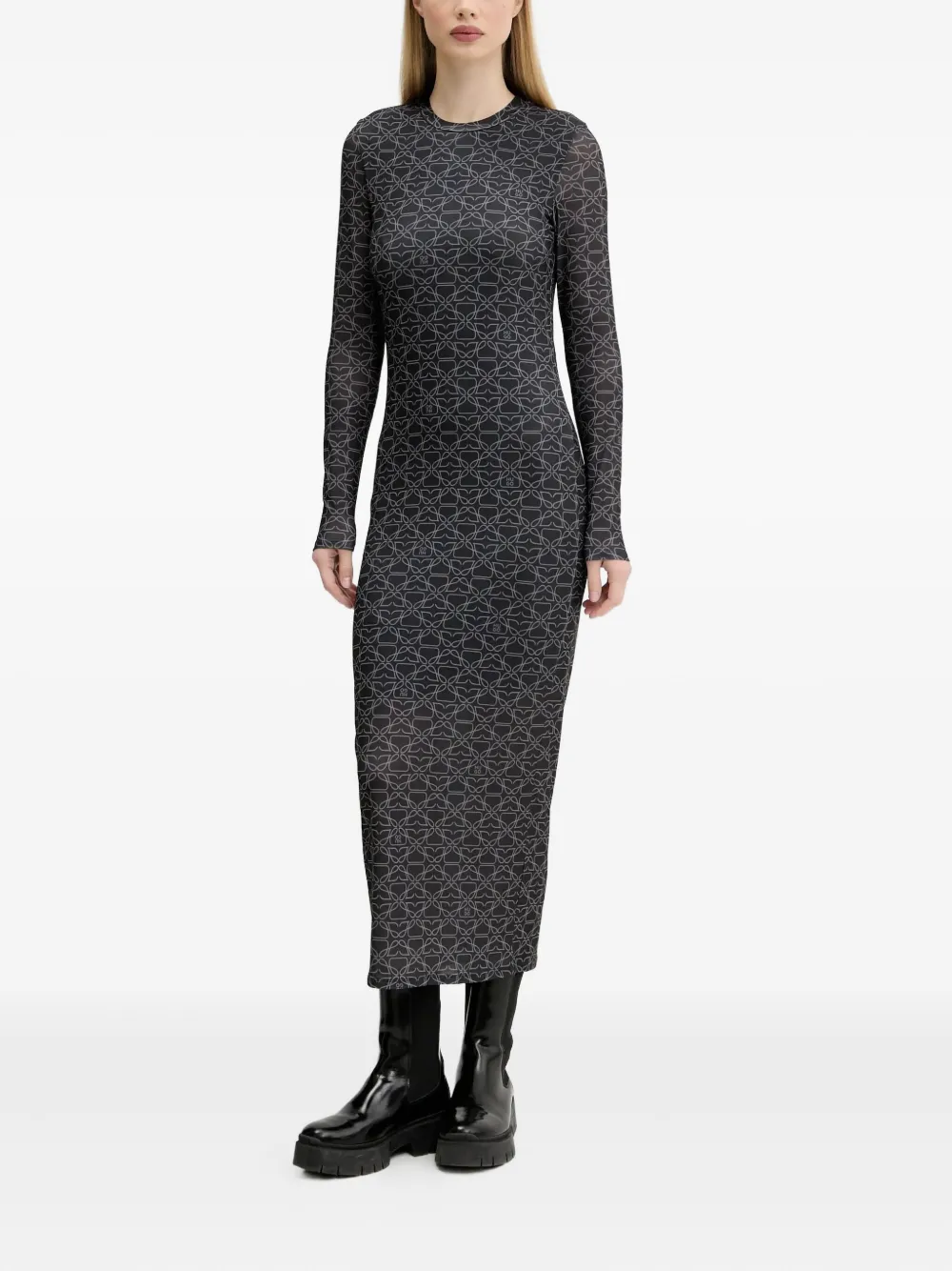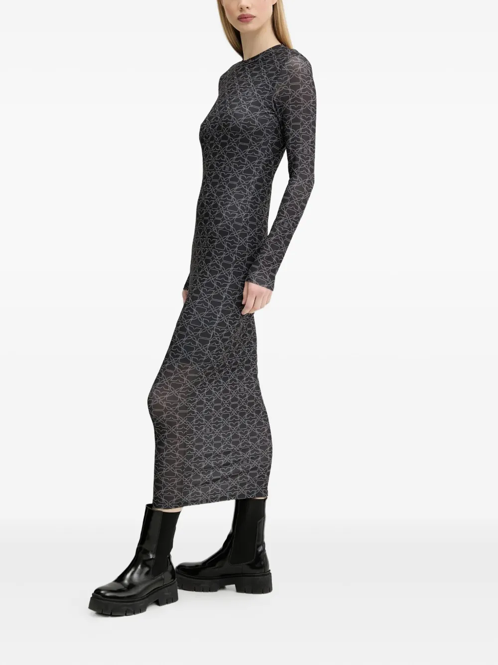 Платье макси с длинными рукавами и принтом HUGO, серый
