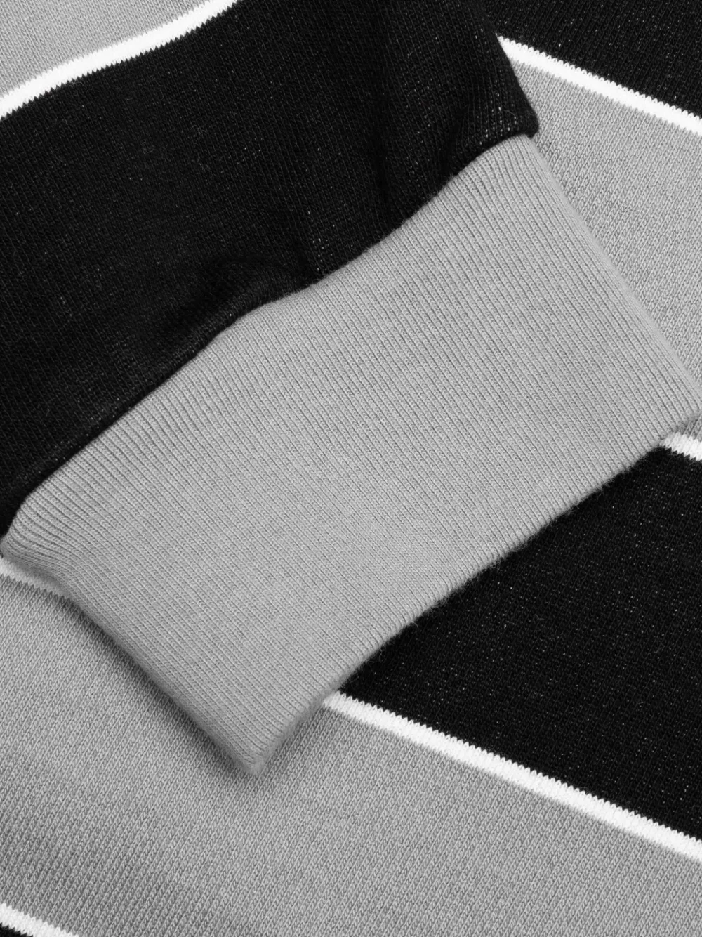 Черно-серая нашивка с логотипом, ребристые манжеты, круглый вырез горловины, длинные рукава